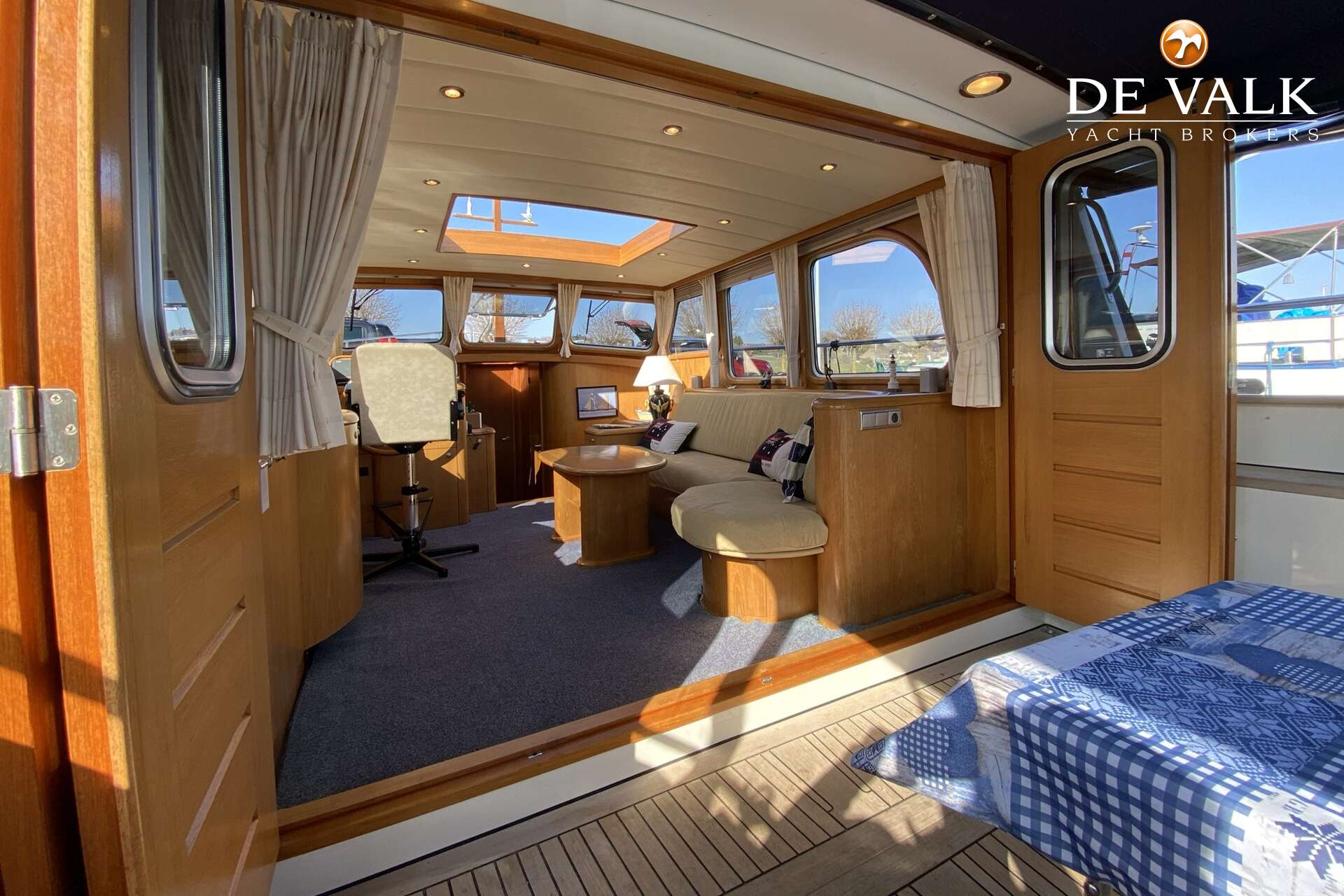 Beautiful Stevenvlet 12.85 named "Cascade" built by Merwelands Jachtbouw and designed by Jan Visser Yacht Design. This beautiful Stevenvlet is very well equipped with central heating, air conditioning, dishwasher, washing machine, double glazing, etc.. This makes this Stevenvlet 12.85 very comfortable in all seasons. Because of the powerful and reliable John Deere diesel engine and hydraulic bow thruster, the "Cascade" is also very well maneuverable.
