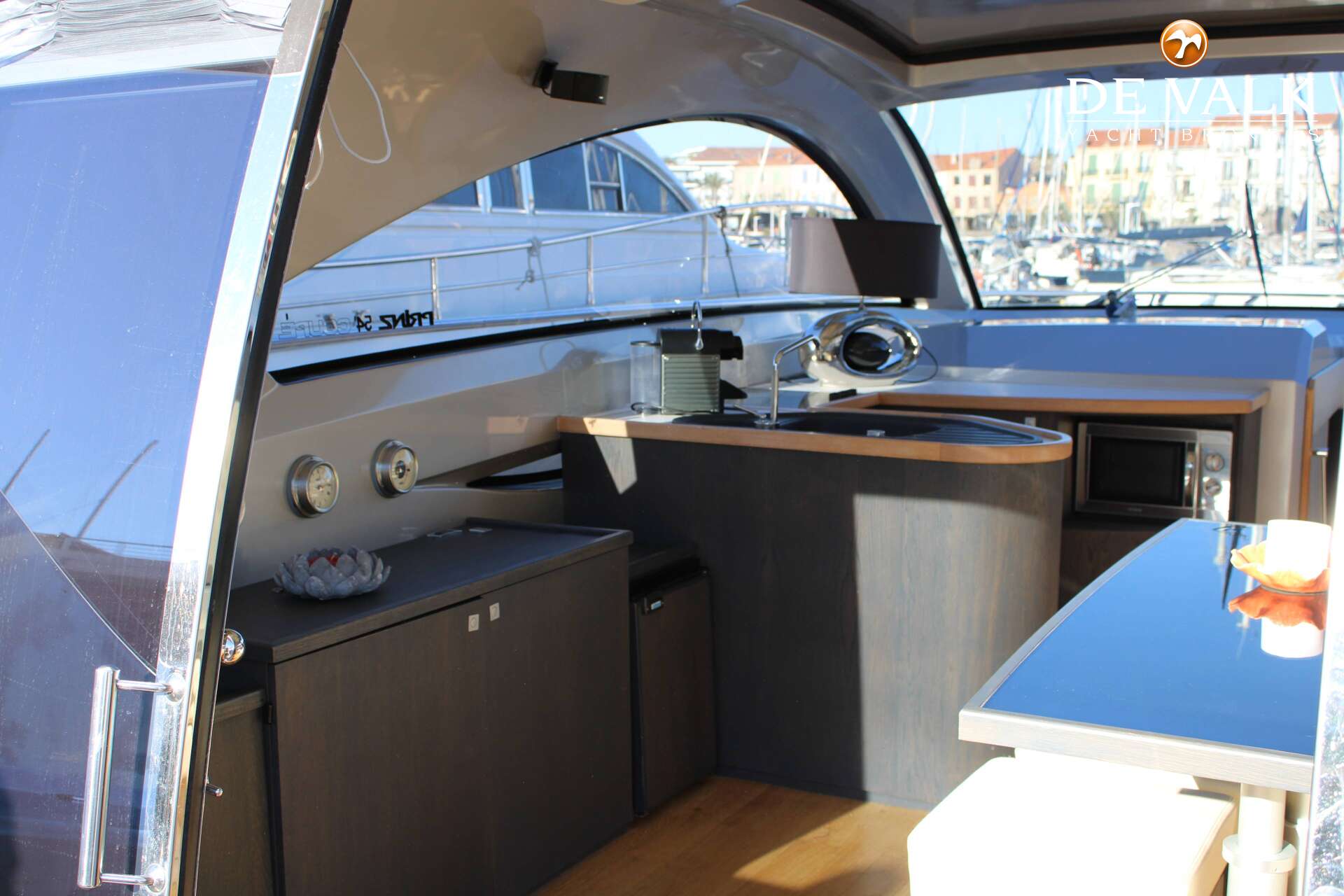 The Prinz 54 with her bicolored hull and stylish design, is an eyecatcher in the harbour and at sea. You feel her elegance and performance, to give you the freedom you wish. The stylish interior and 3 cabins offer enough space for 6 at the Prinz 54. Navigation with the Volvo Penta IPS-system with 3 controls give you full control over the Prinz 54.