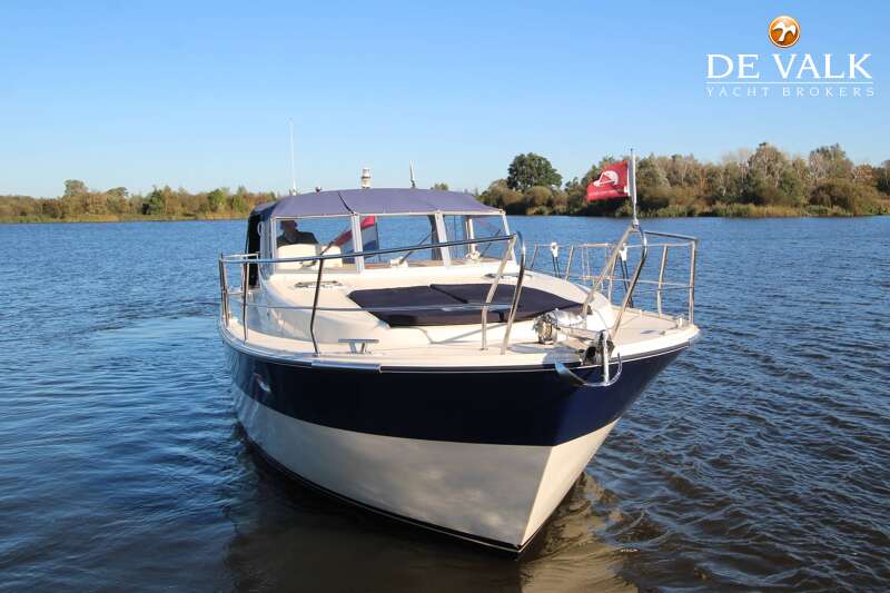 This beautiful Agder 1100 Convertible has a large swimming platform aft.A door in the transom provides access to the spacious open cockpit.The interior has a lay-out with two separate sleeping cabins and a toilet/shower room plus the possibility to transform the dinette in to a double berth .