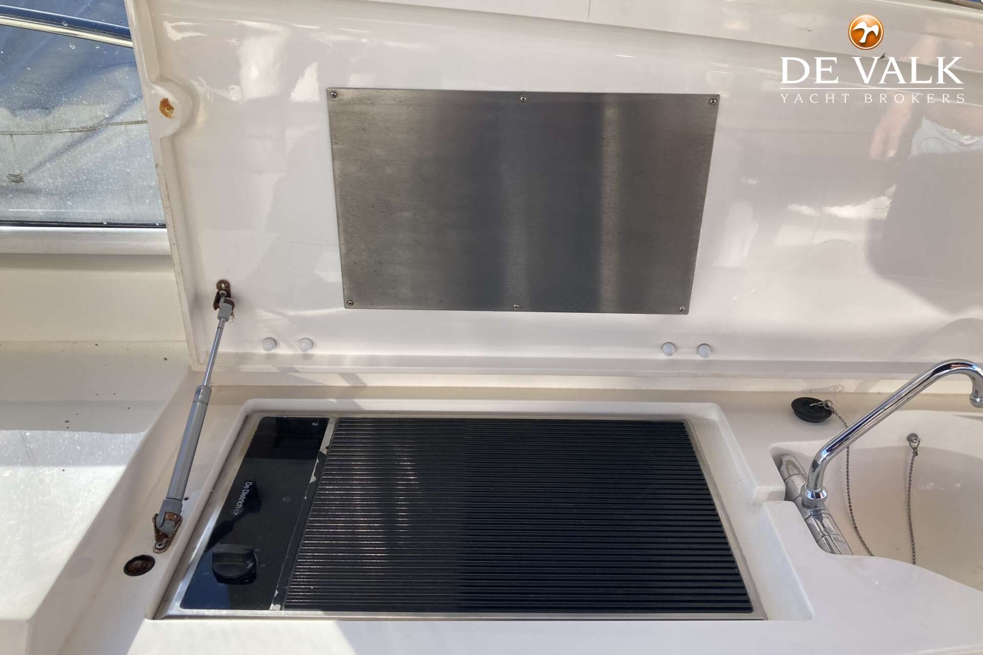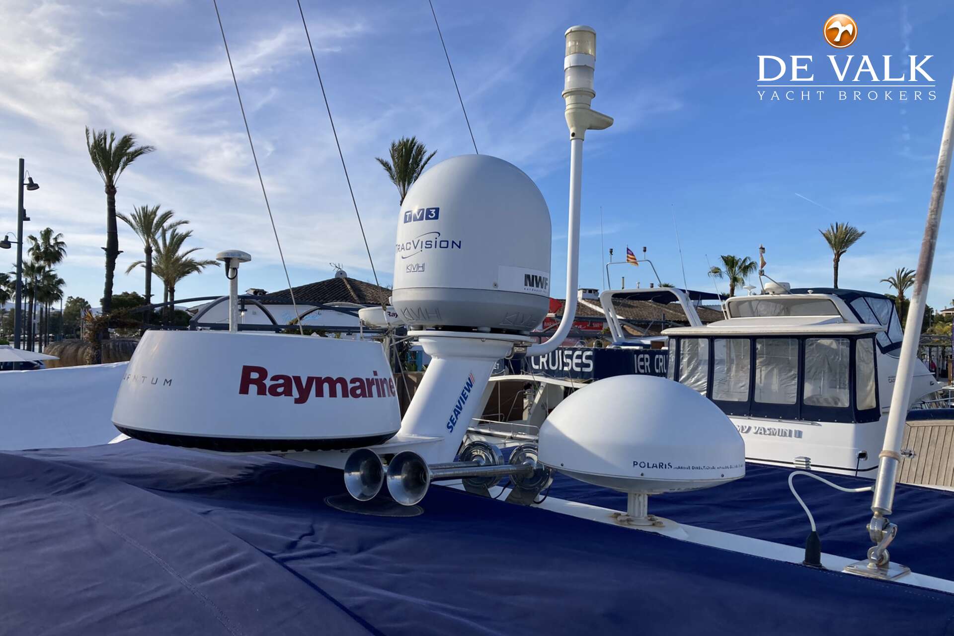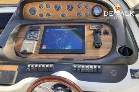 Enjoy the summer breeze with this Sunseeker Camarque 50 (2000). This first-class sports cruiser rides naturally level and has a very soft ride offshore. The hardtop with sunroof lets you cruise for views in fair weather and foul and change the ambience from dayboat to champagne cruiser at the flick of switch. The 50-footer has other big-boat features: a garage for the jet-powered RIB, a superyacht radar arch, and an amenities center along the entire starboard side of the cockpit.