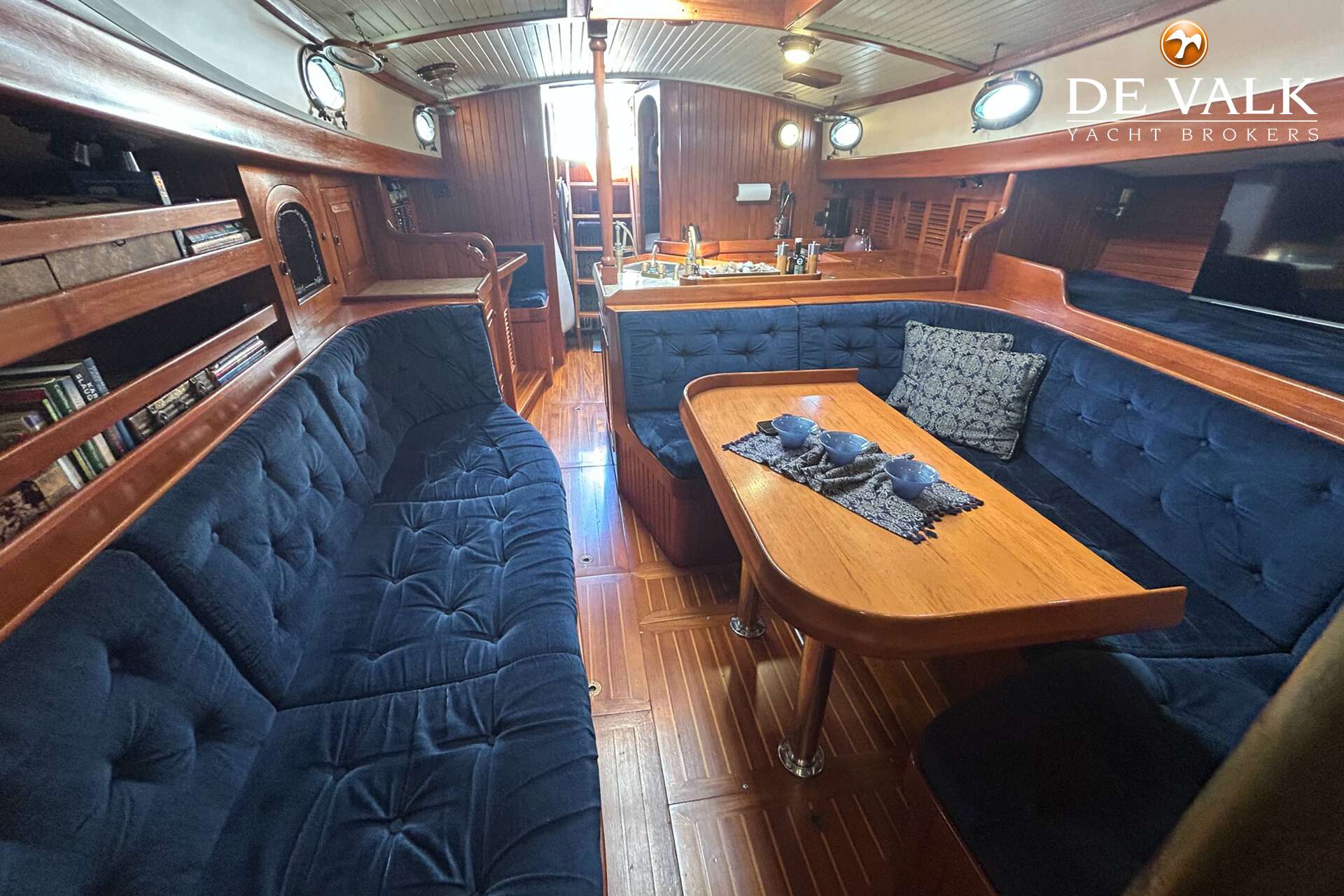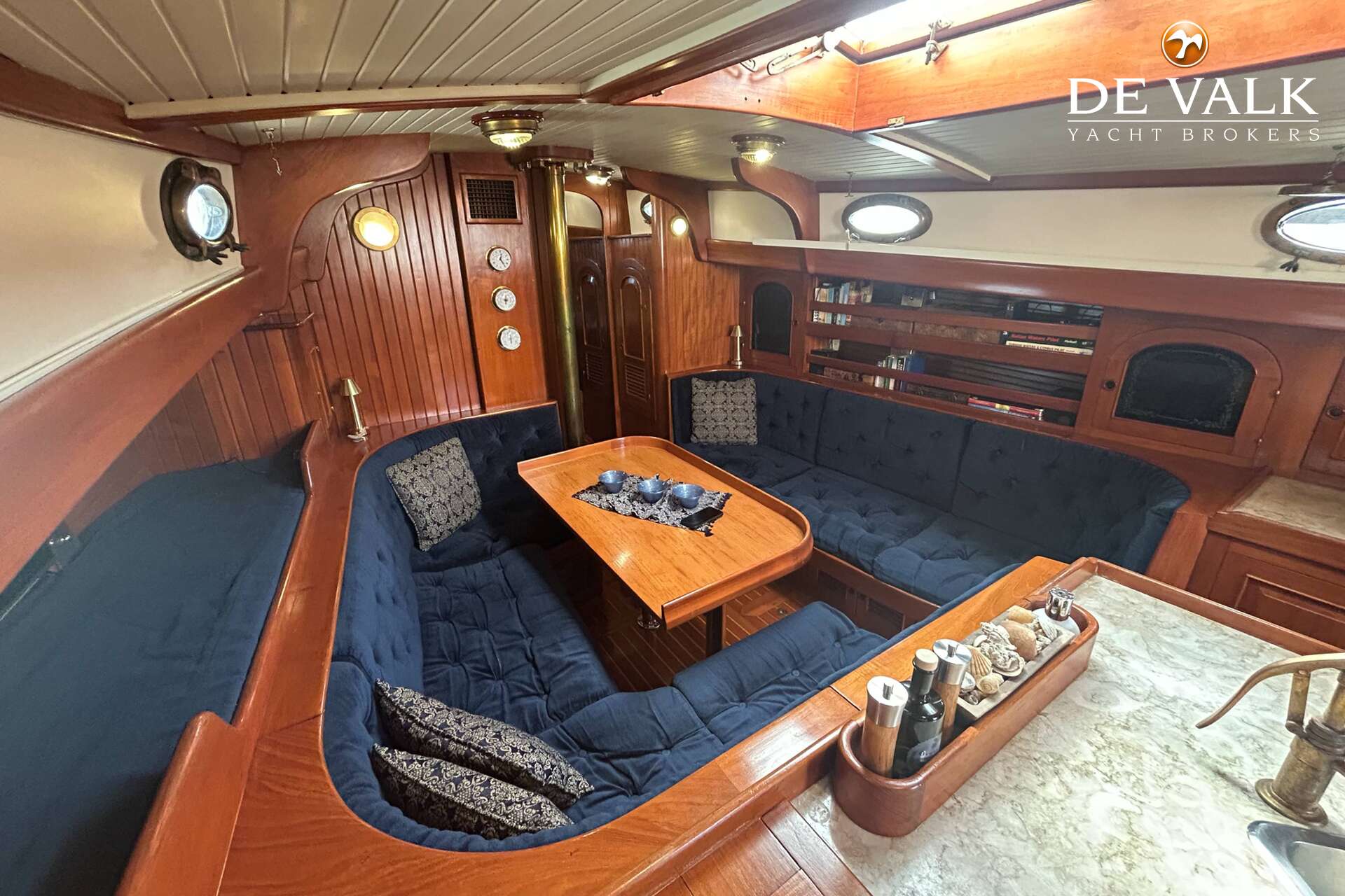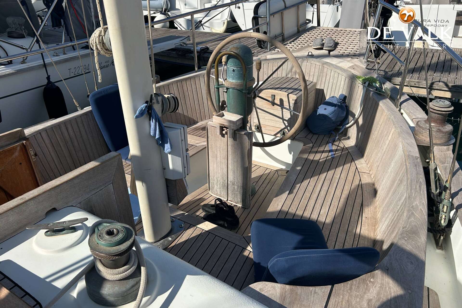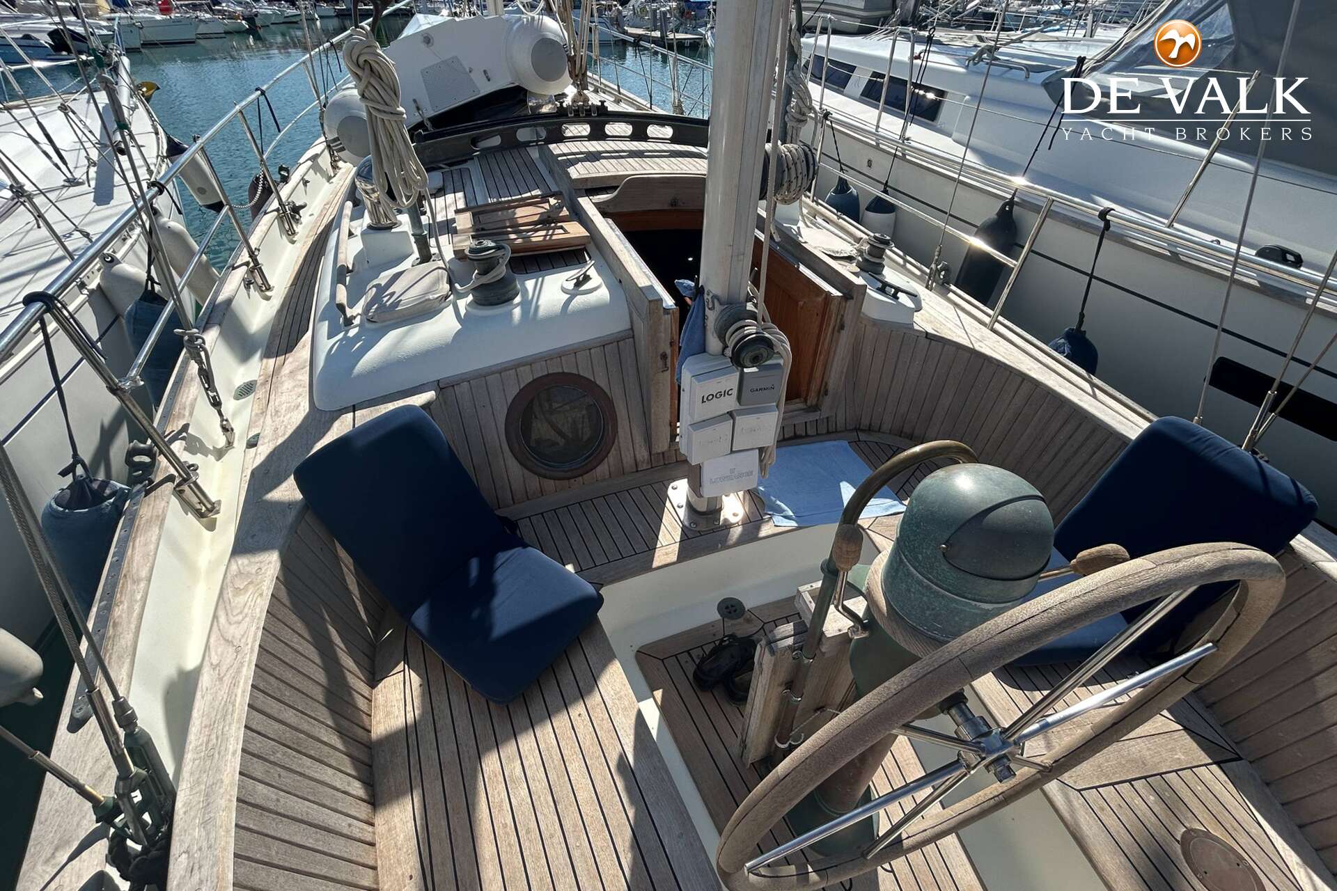 Cutter rigged ketch with various sails and Lewmar winches, and offers accommodation for 8 people in double and single cabins. This yacht is crafted with a fiberglass hull and features solid teak woodwork and bronze fittings. It is equipped with a long keel and a 66 hp Yanmar diesel engine, overhauled in 2021