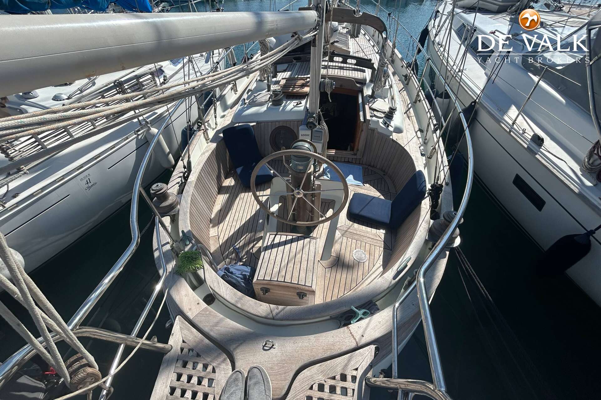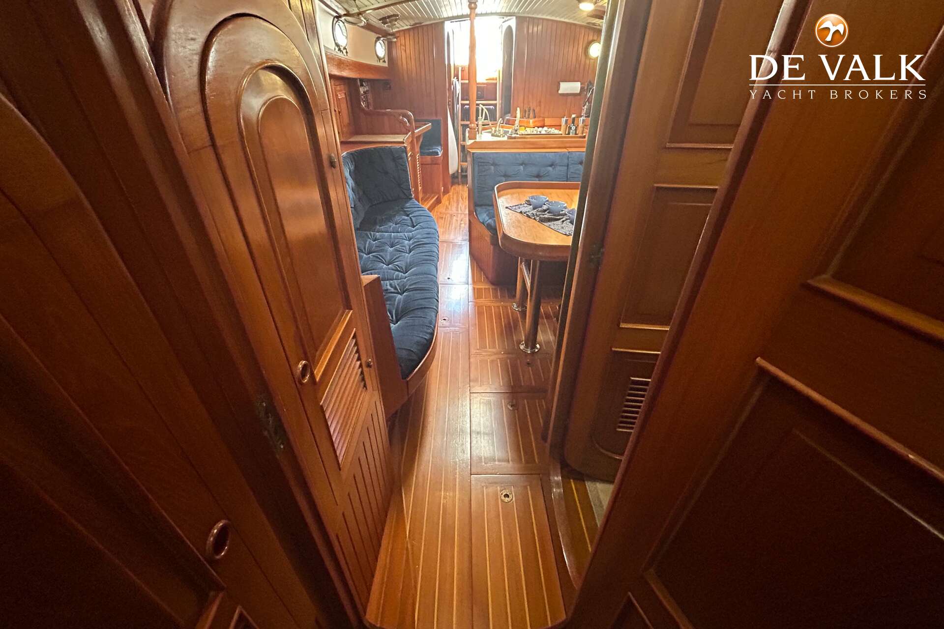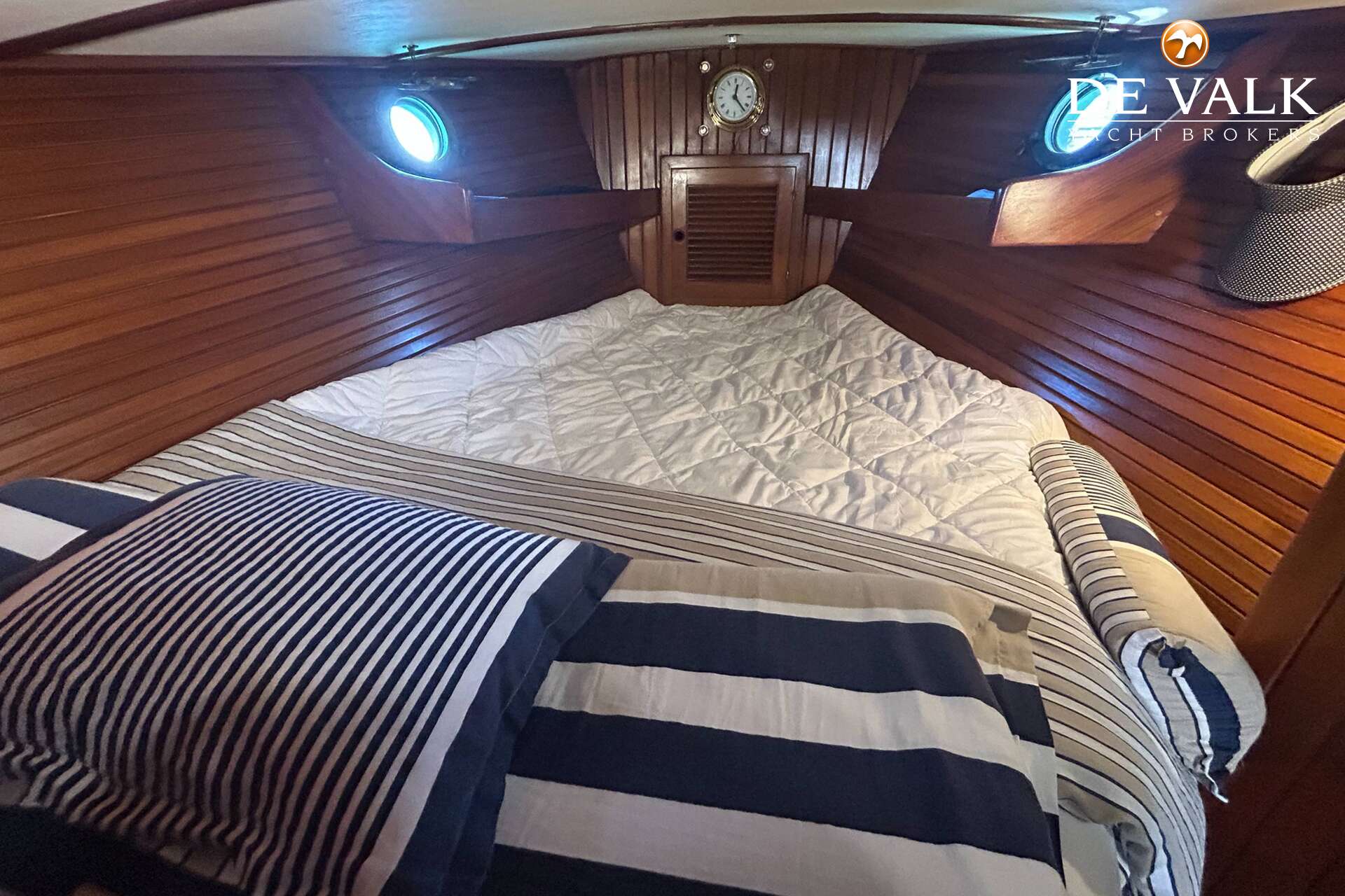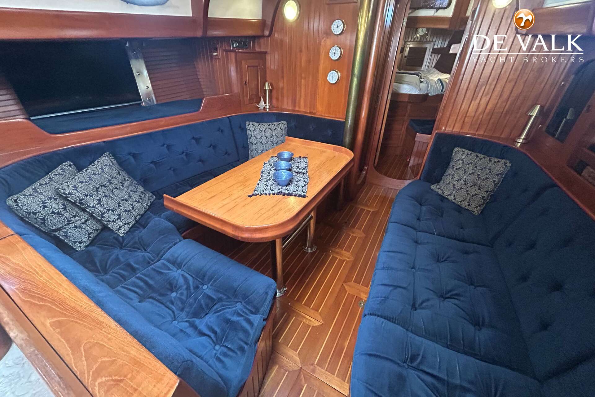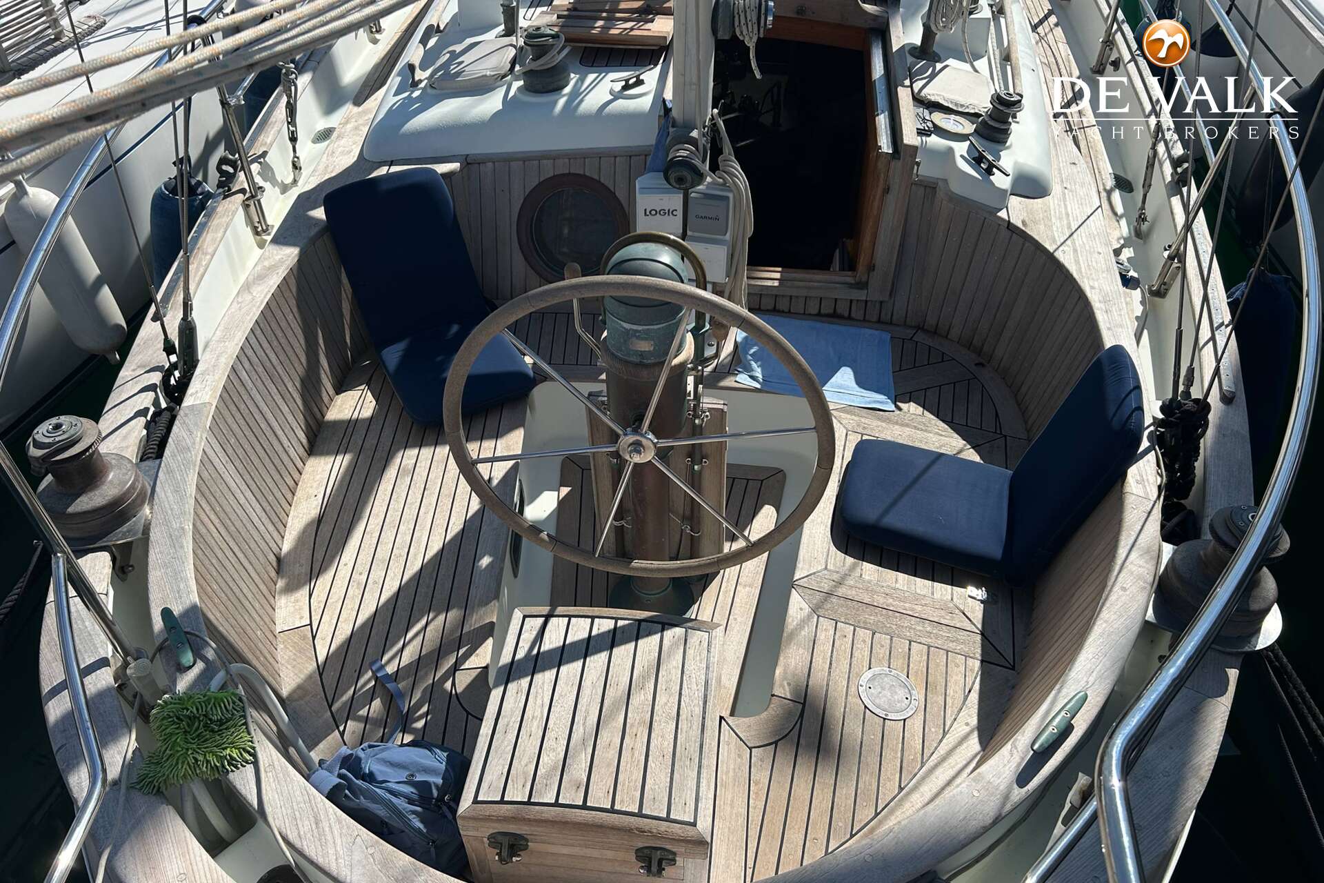 Cutter rigged ketch with various sails and Lewmar winches, and offers accommodation for 8 people in double and single cabins. This yacht is crafted with a fiberglass hull and features solid teak woodwork and bronze fittings. It is equipped with a long keel and a 66 hp Yanmar diesel engine, overhauled in 2021