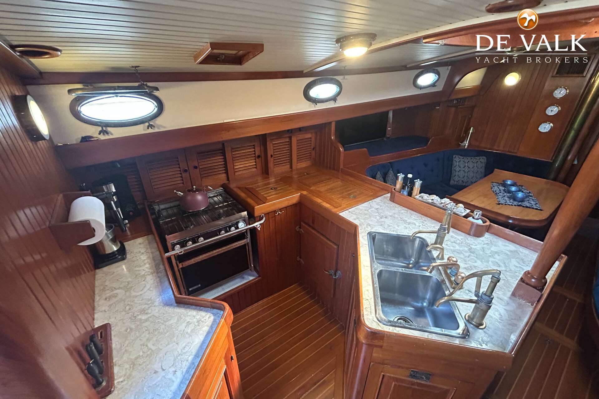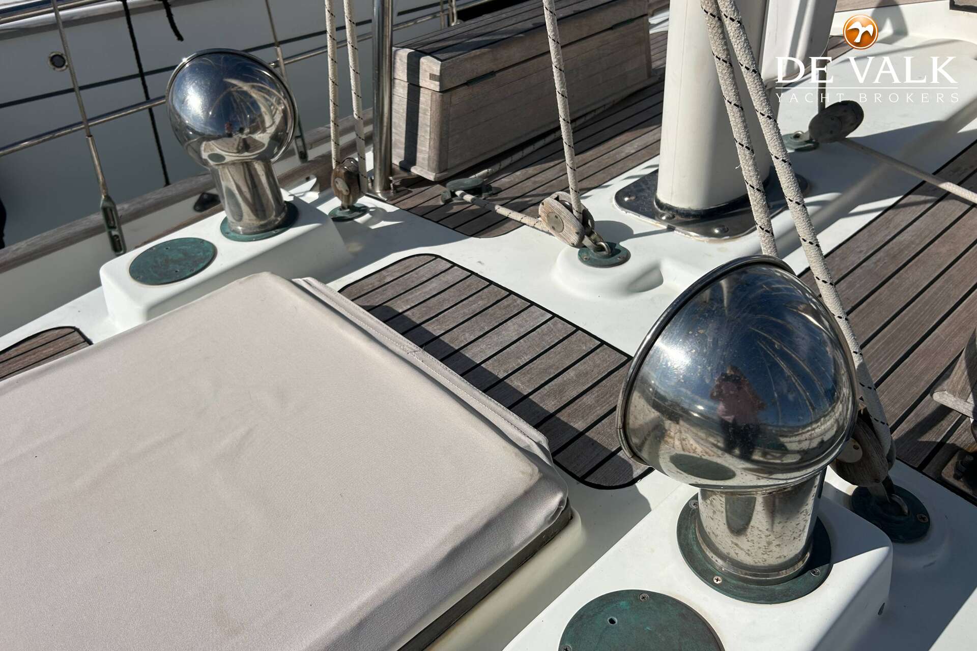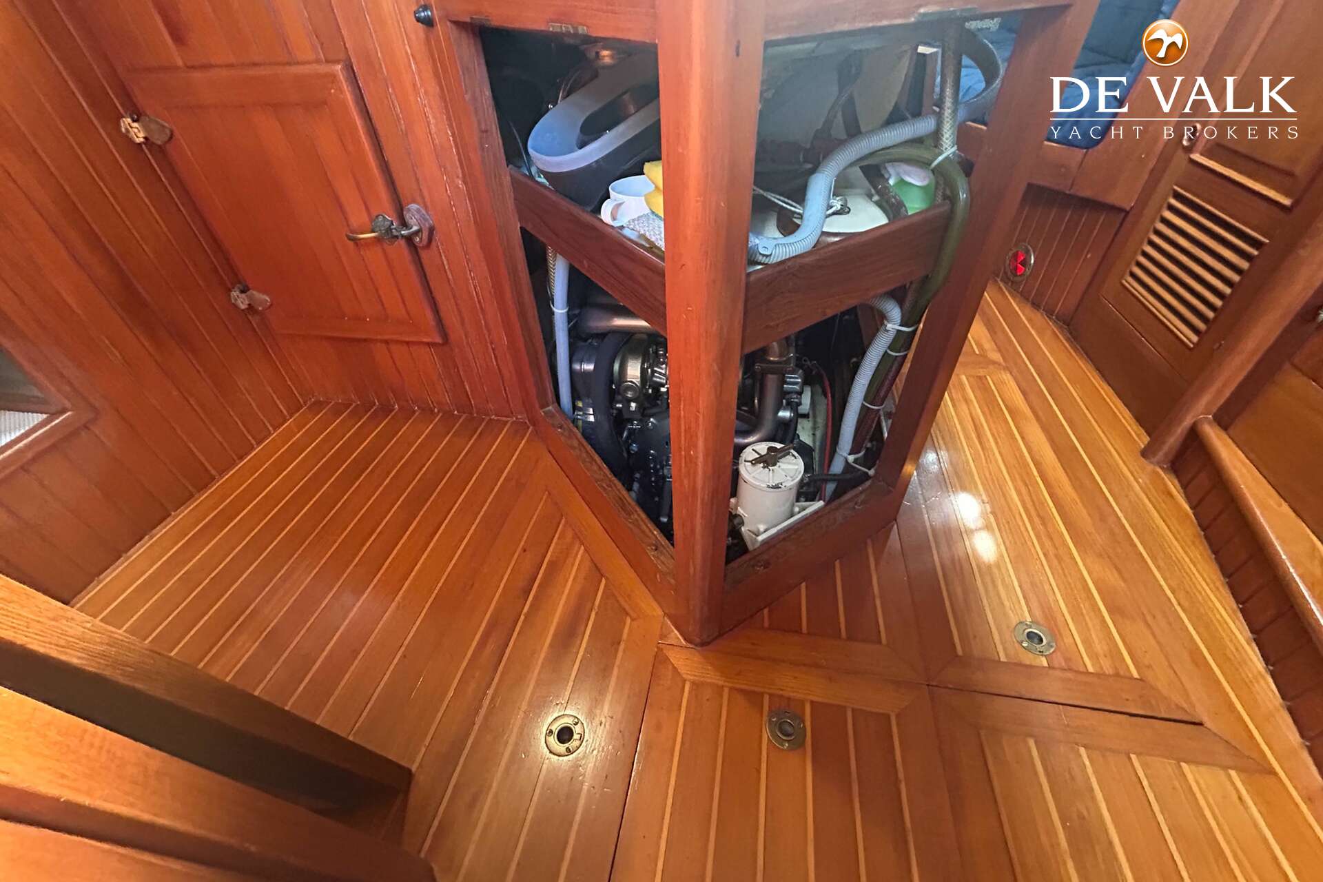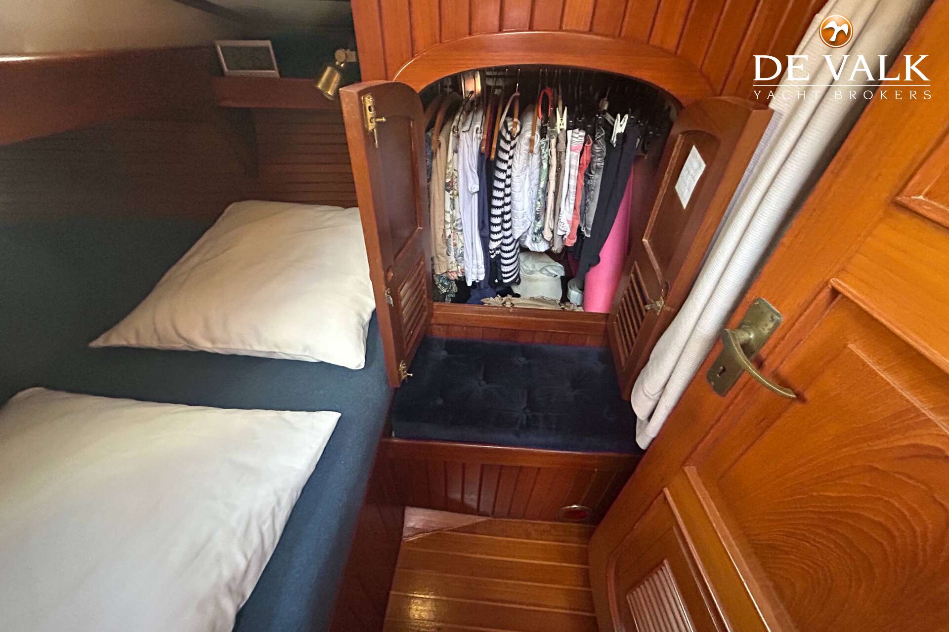 Cutter rigged ketch with various sails and Lewmar winches, and offers accommodation for 8 people in double and single cabins. This yacht is crafted with a fiberglass hull and features solid teak woodwork and bronze fittings. It is equipped with a long keel and a 66 hp Yanmar diesel engine, overhauled in 2021