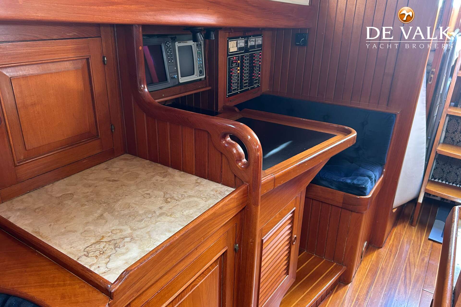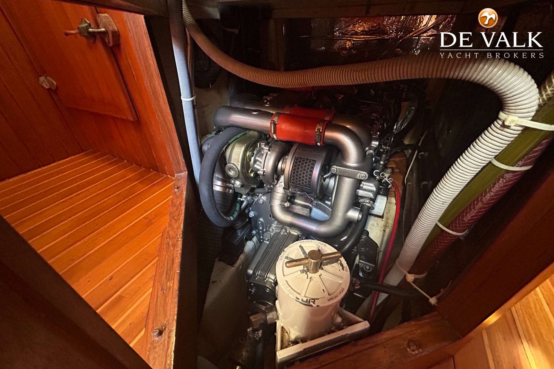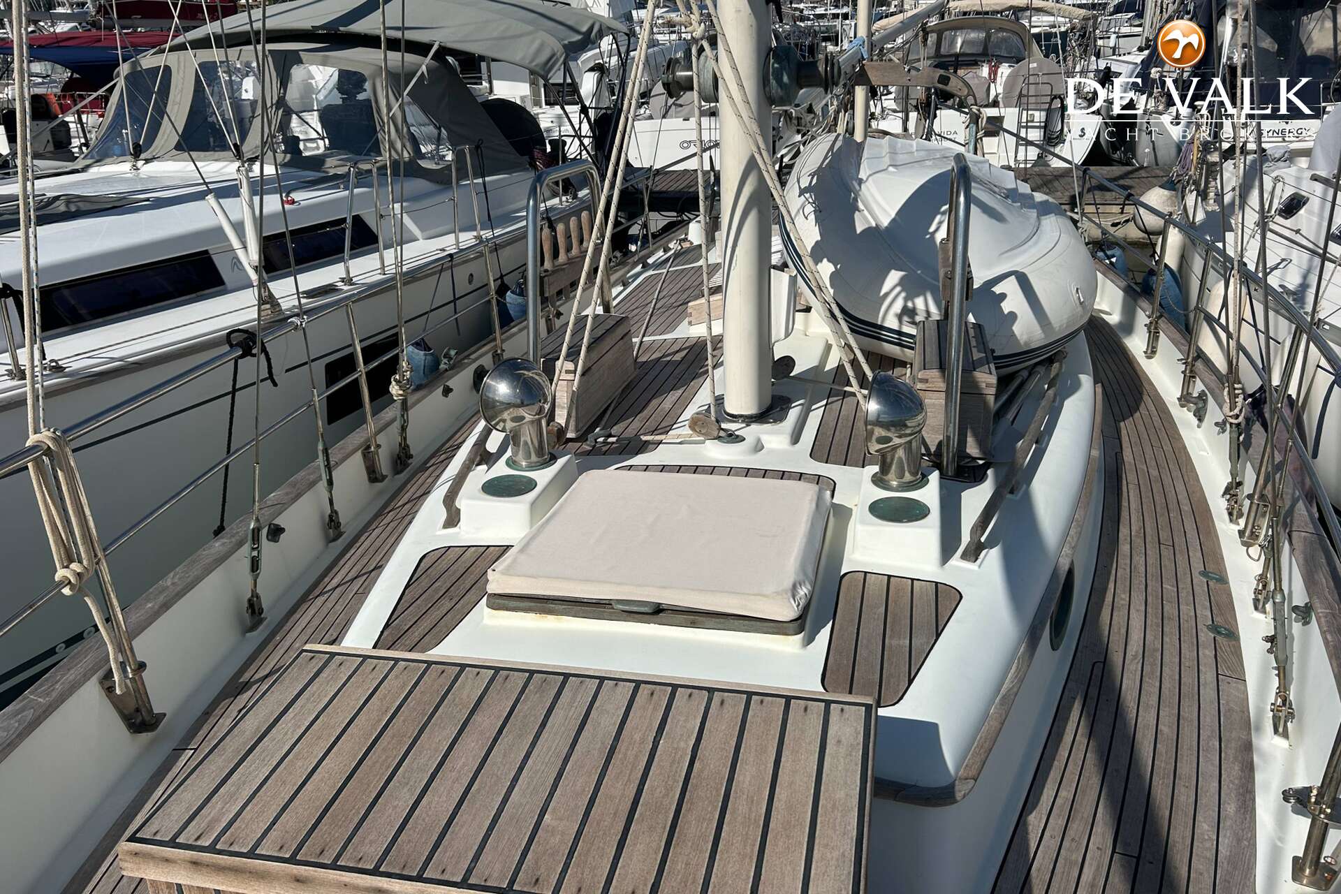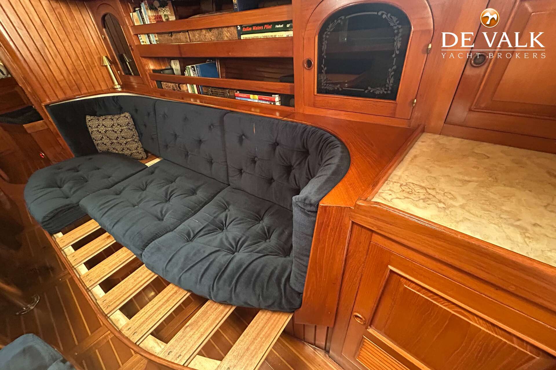 Cutter rigged ketch with various sails and Lewmar winches, and offers accommodation for 8 people in double and single cabins. This yacht is crafted with a fiberglass hull and features solid teak woodwork and bronze fittings. It is equipped with a long keel and a 66 hp Yanmar diesel engine, overhauled in 2021