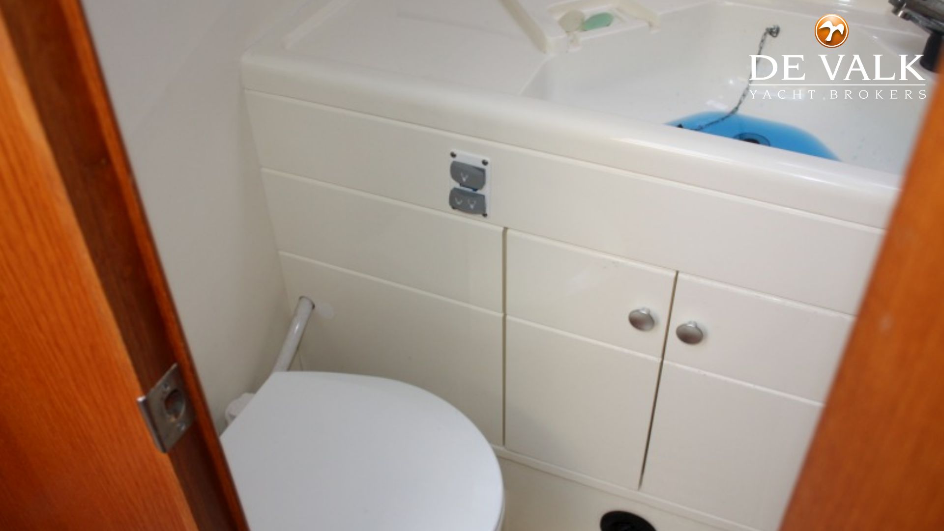 finished in wipe-clean laminate surfaces, electric marine toilet, wash basin with hot and cold pressurized water, shower in cubicle area with shower waste pump, opening hatch set flush in deck head.