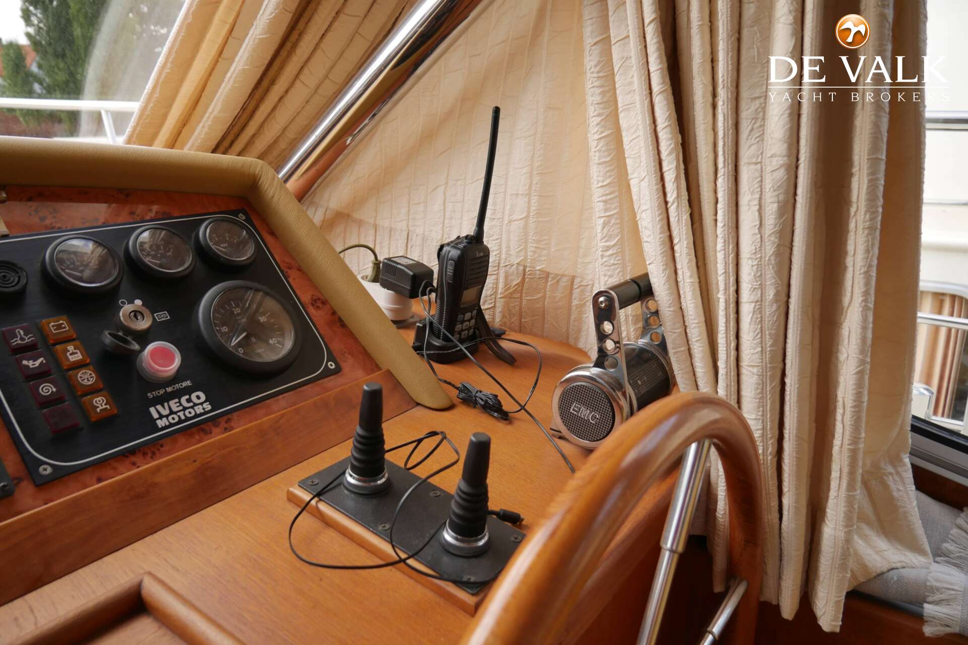 Almarine 1430 is a spacious Dutch motor yacht, designed by Hans Alma. Hull and technology built by shipyard "De Treffer", the interior by "Van der Meijden". Very well equipped; strong engine, lots of hydraulics, good electricity facilities with a generator, double glazing and central heating. Ready to stay for a long time and make beautiful trips. Equipped with an open cockpit and a fly-bridge and still suitable for sailing the French canals. A smart interior design with many possibilities to stay both upstairs and downstairs. Well maintained by its first (current) owner.