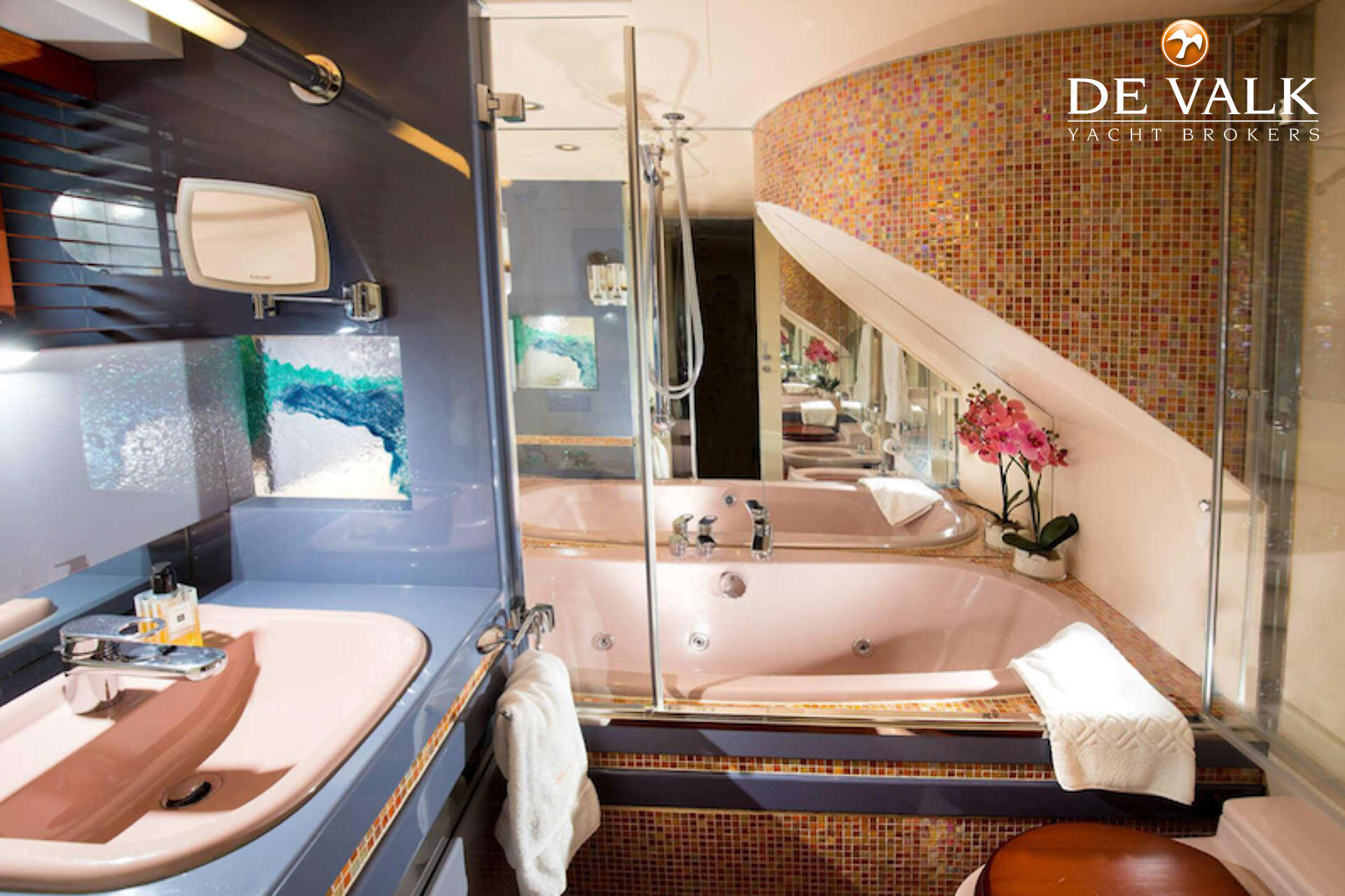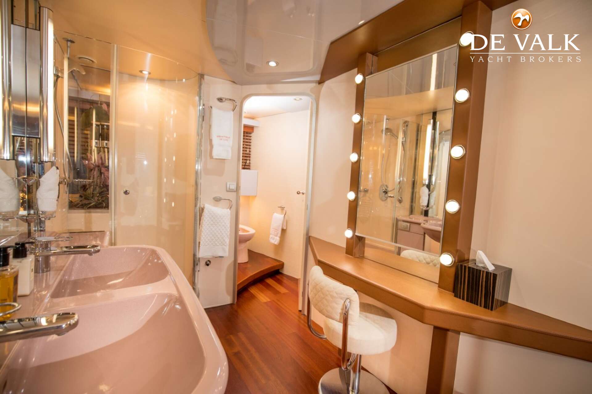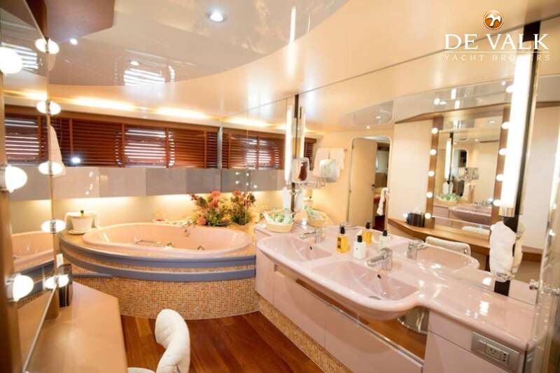 This sharp Heesen 93 (1989 / 2004) has the characteristic line with a wide and spacey above-standard quality accommodation and fly deck area. The large aft deck leads to a spacious and very well distributed saloon, leading down to the well-equipped accommodation area with a large Master cabin with a spacious bathroom and Jacuzzi. The large galley leads down to the spacious crew area. A very large fly deck leads down to a mid-deck bridge with a navigation table and L-shaped sitting area. In class Bureau Veritas. Some jobs are pending, more info by the broker.