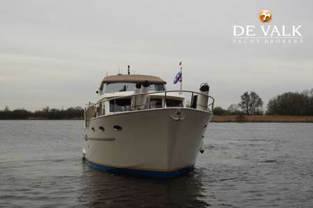 Linskens SuperCruiser 48 a Dutch-built steel motor yacht of 14 metres 40. A wonderfully comfortable boat with enormous interior space, partly due to the generous round seating in the front of the motor yacht. Two cabins, 1 with French bed and 1 with bunk beds. March 2024, the Linskens was completely repainted (hull and superstructure). A motor yacht in great condition and equipped with basically everything you need for a long stay on board. The Linskens is located in our covered sales marina in Sneek, where you are welcome seven days a week.