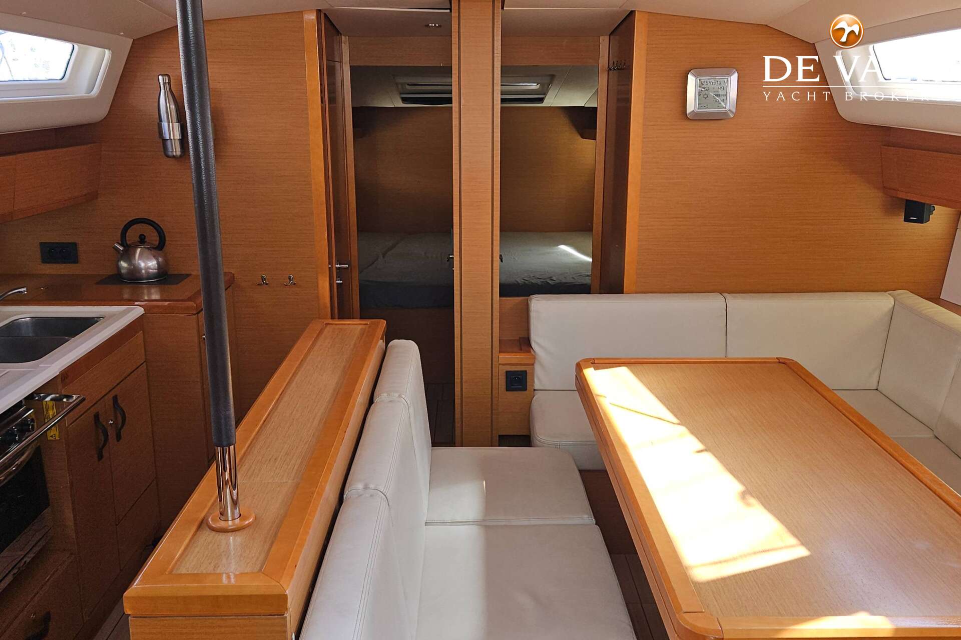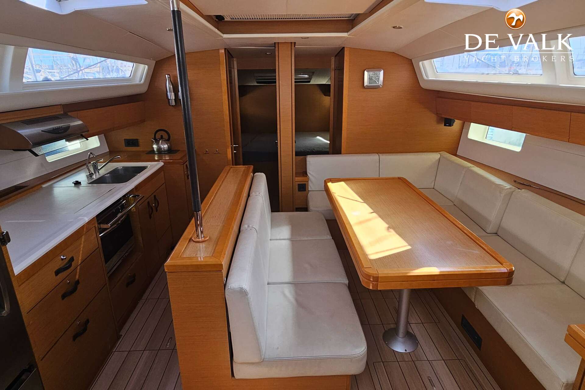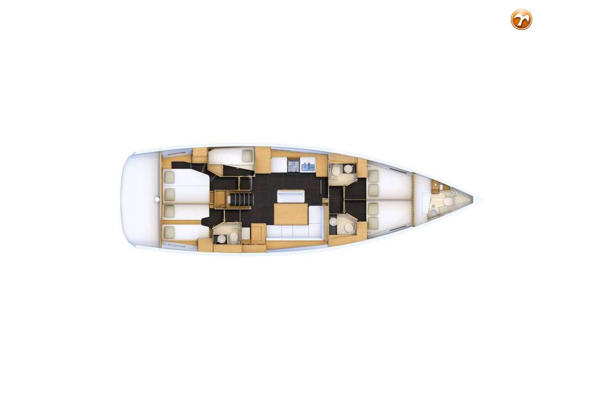 The Jeanneau 54 is a luxurious, comfortable and dynamic yacht impressing by the elegance of her design, which invites both relaxation and performance. You will take great pleasure in sailing on the 54, which has been very well thought-out and finely built by Jeanneau for power and comfort. Everything is really simple when steering this large offshore boat which includes a space dedicated to navigation with twin wheel steering stations, a friendly and comfortable space around the big cockpit table and a beautiful relax area, while offshore or coastal cruising. Ex Charter boat from Olbia.