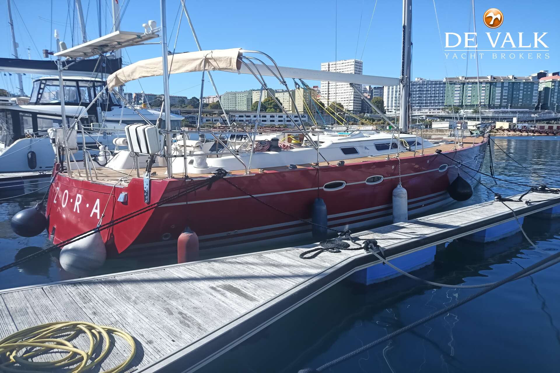 She is equipped with full cockpit enclosure, bimini and sun canopy, all-weather proof cruising. Spade anchor and Vesper AIS ensure peaceful nights onboard.
