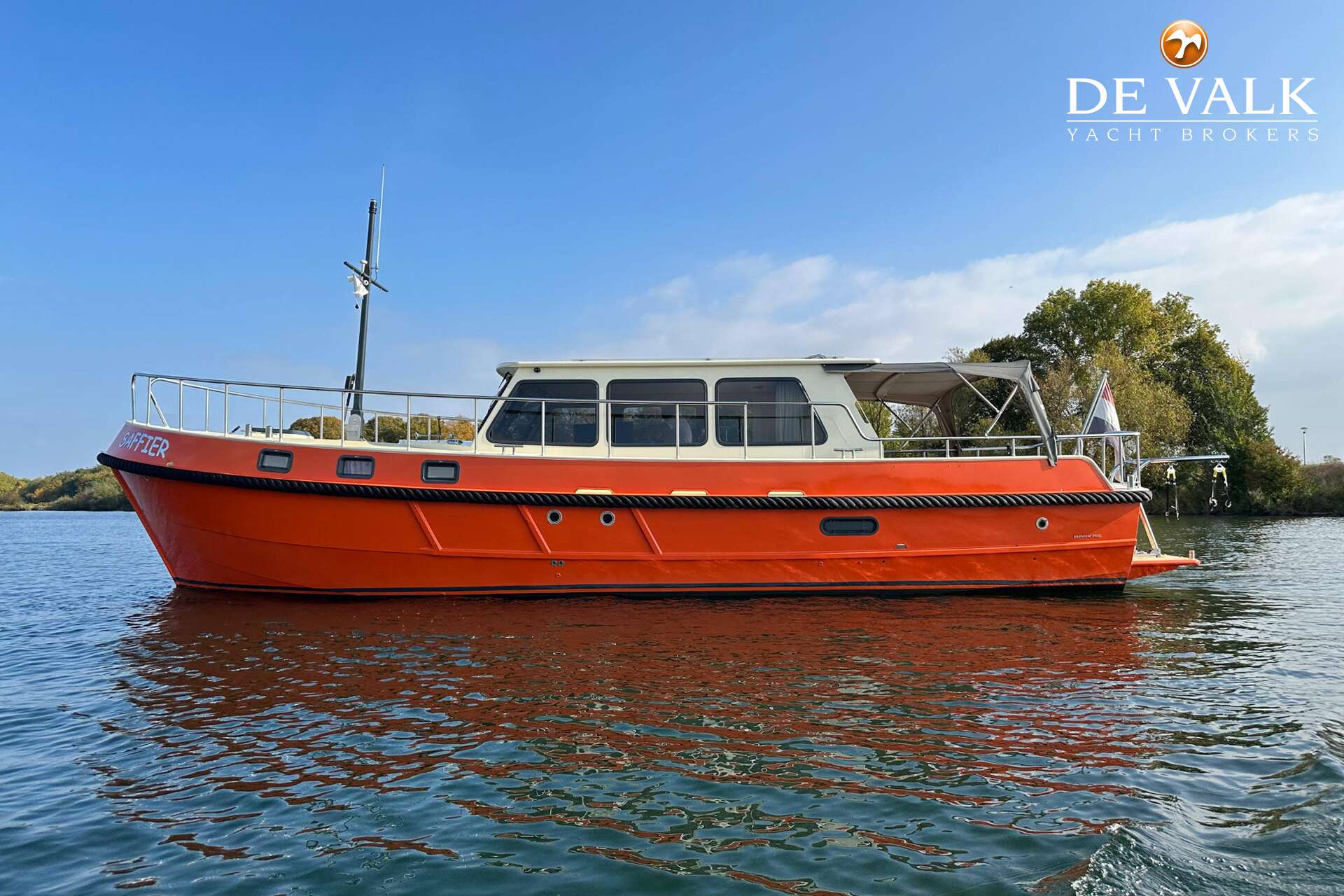 The entire exterior has been freshly painted with a durable 2-component paint system. New window frames with double glazing and central heating make it perfect for all seasons. The solar panels provide for your own energy needs, and best of all—you can steer from shore. With 1 remote control, you have all control