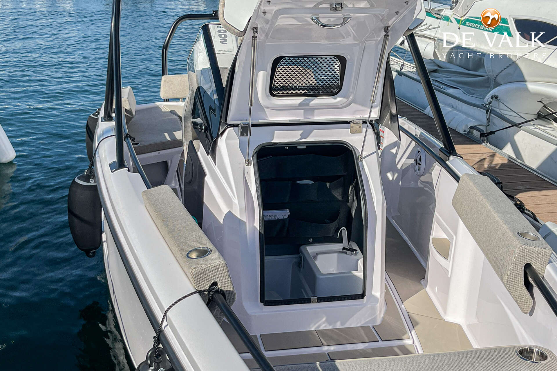 A 2025 Axopar 22 Sun Top in almost-new condition with only 25 engine hours. This sporty and stylish day boat comes equipped with the Mediterrana Package, offering enhanced comfort and a premium look. The spacious U-sofa at the aft easily converts into a comfortable sunbed, perfect for relaxing on the water. The Sun Top provides pleasant shade while maintaining the open and airy feeling Axopar is known for.