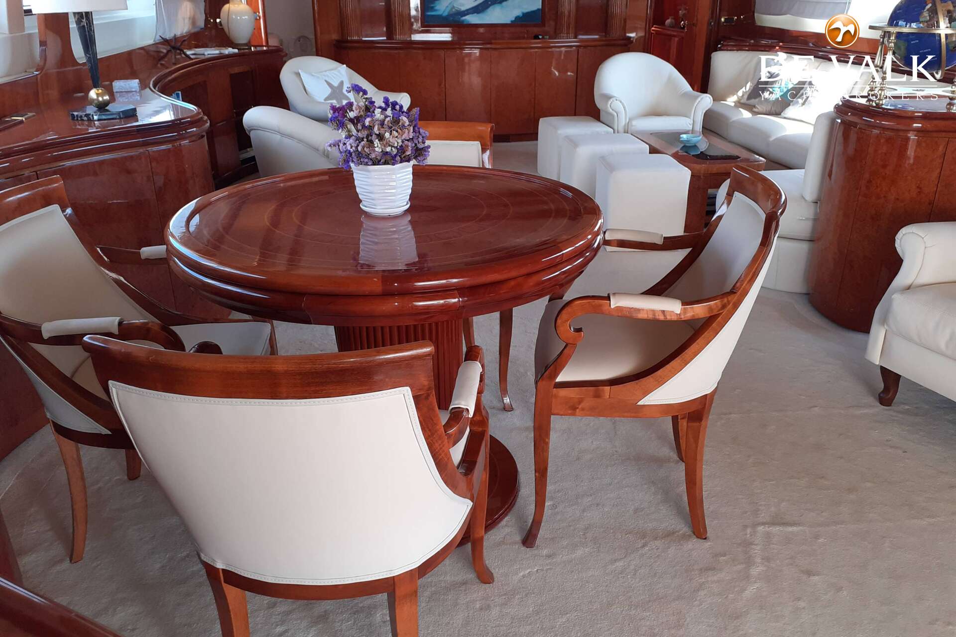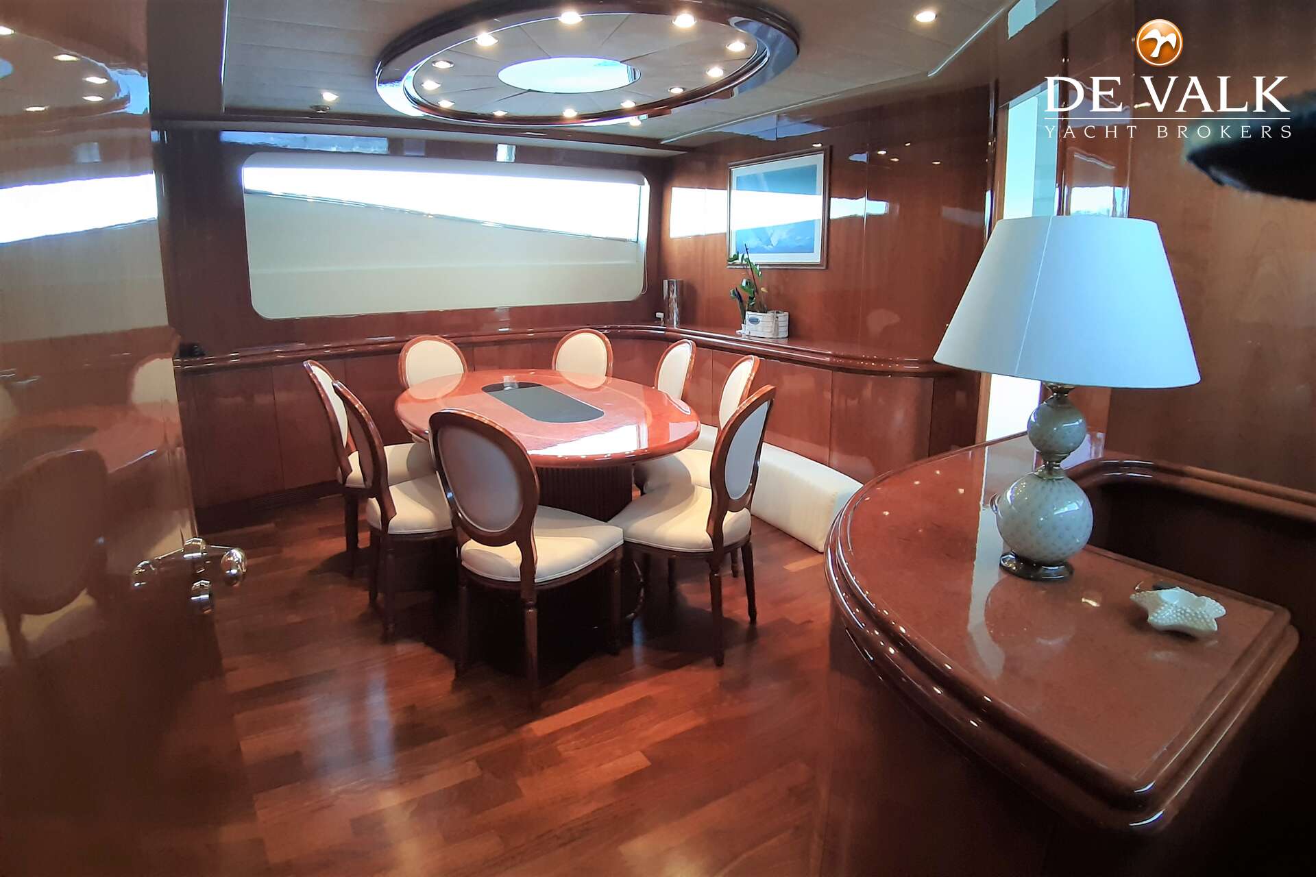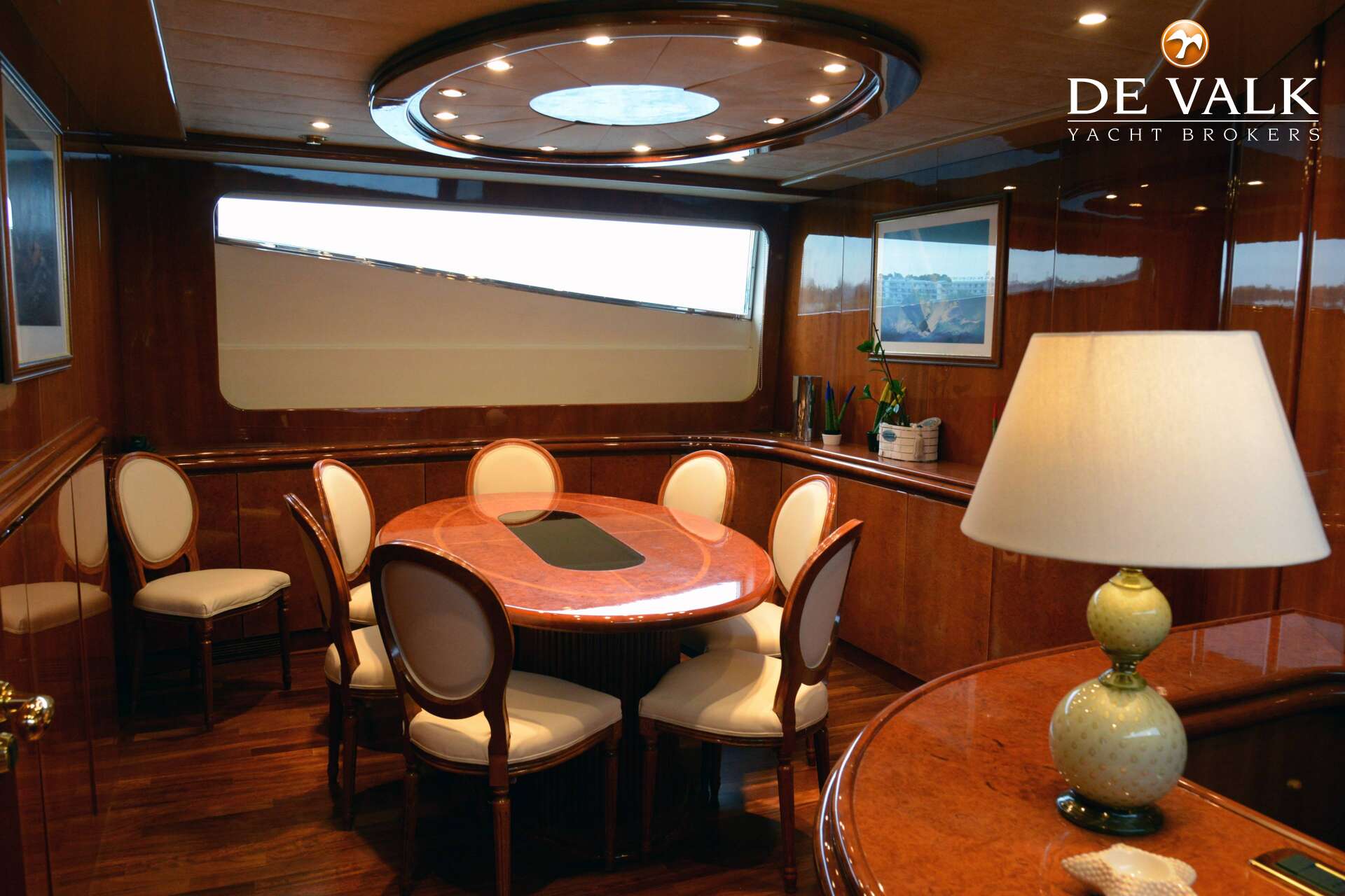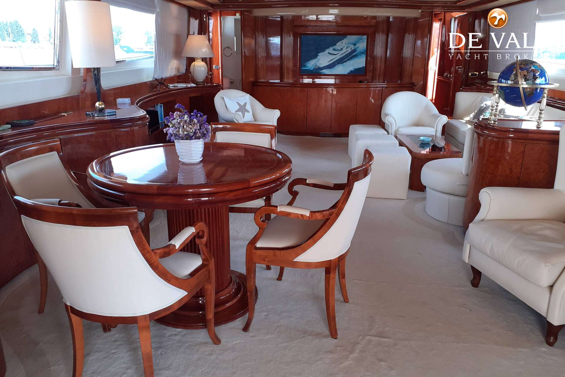 Built by Versilcraft in 2001 and comprehensively refitted in 2024, Planet 105 is a yacht that reflects meticulous care & timeless elegance. Her interiors, designed by the renowned Nuvolari & Lenard, showcase a harmonious blend of craftsmanship & sophistication. Rich wooden panelling creates a warm, inviting ambiance throughout, while bespoke blown-glass lamps grace each cabin, adding an artistic touch.