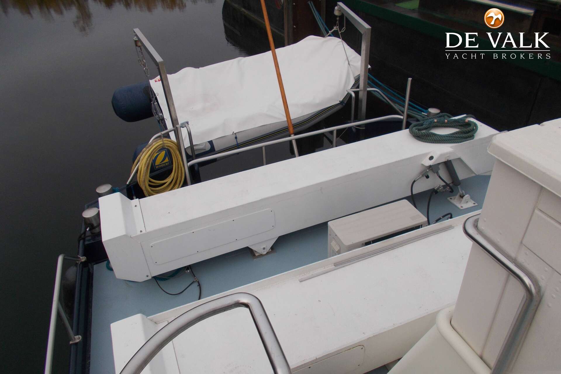 Discover the Tin-Line 65, a 19.90m Dutch-built motor yacht (2004) blending luxury, comfort & performance. Category B rated for sea, rivers and canals. Spacious aft deck with helm, elegant saloon, fully equipped galley, washer/dryer, and 3 cabins for up to 8 guests. Master suite with en-suite bath. Unique aft platform carries a small vehicle. Cruise without compromise.