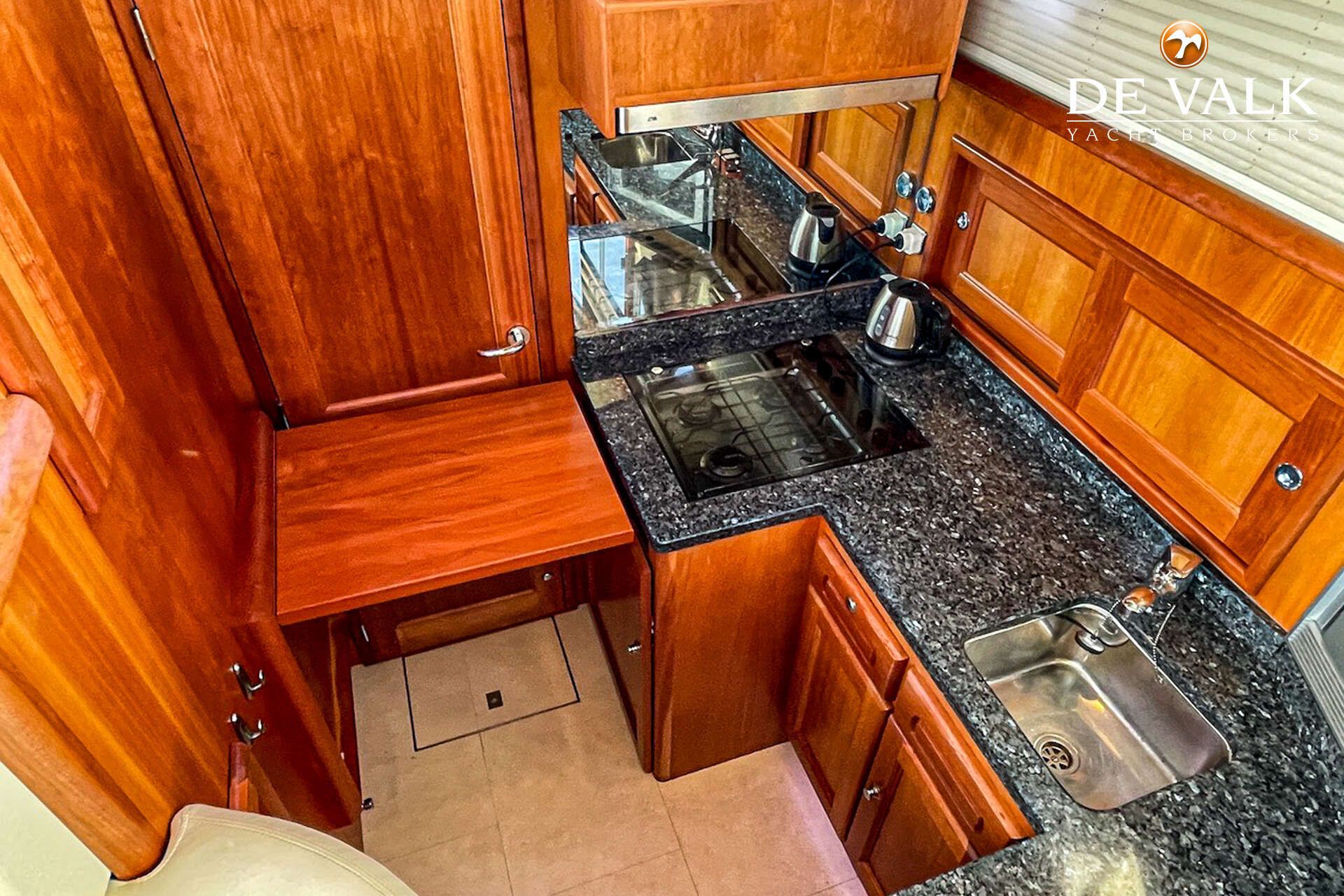The reliable Perkins diesel engine, combined with bow and stern thrusters, ensures easy manoeuvring. A comfortable and well-equipped yacht