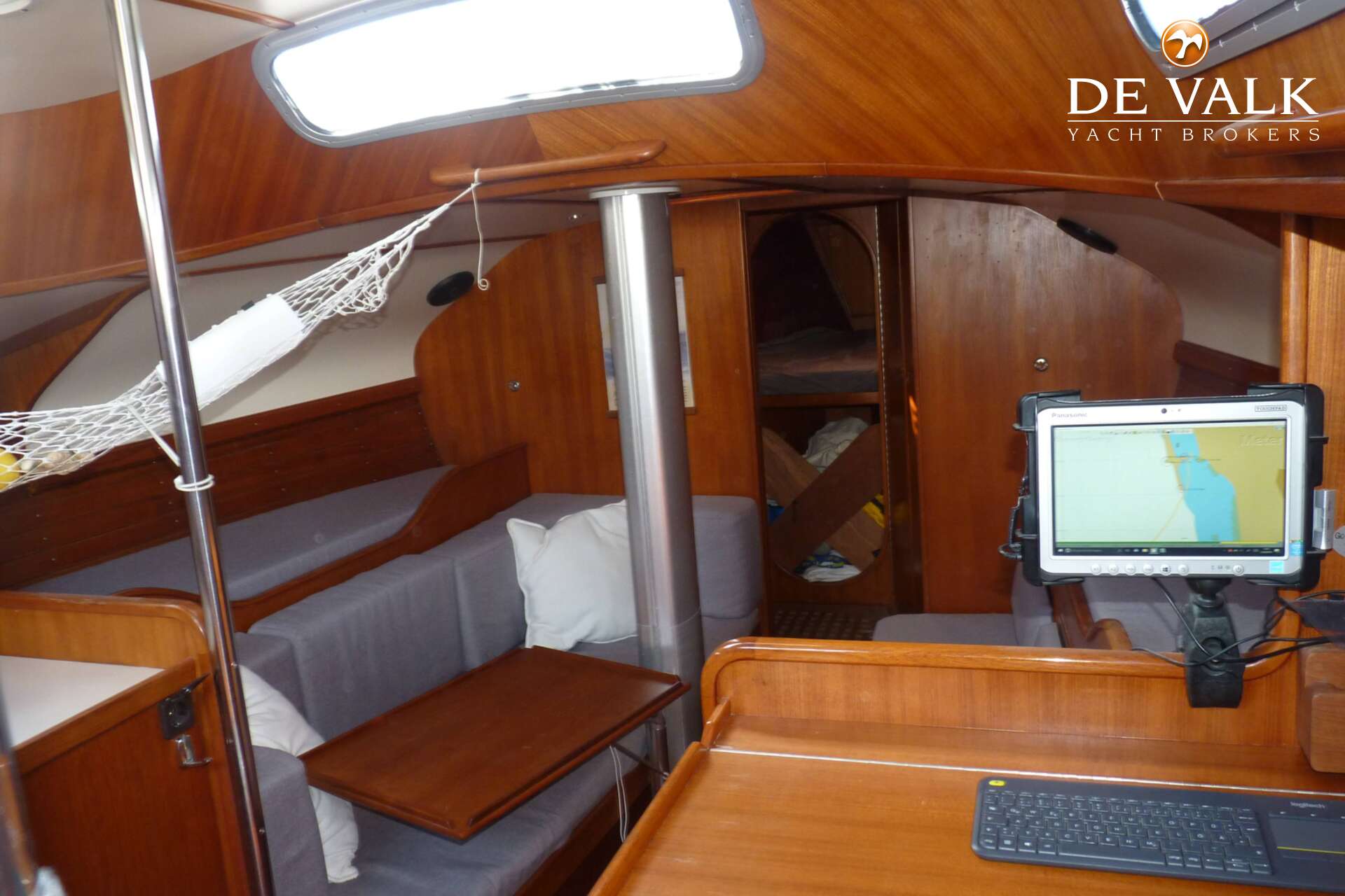 aluminum (frames distance 30 cm) and the deck as well as the interior fittings were made of teak.