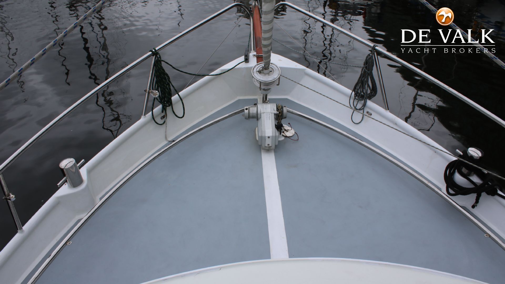De mast kan eraf, wat haar geschikt maakt voor de Franse kanalen.
