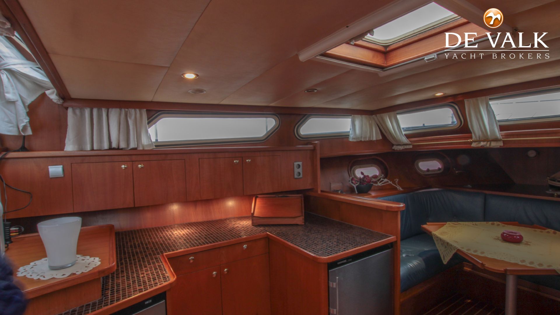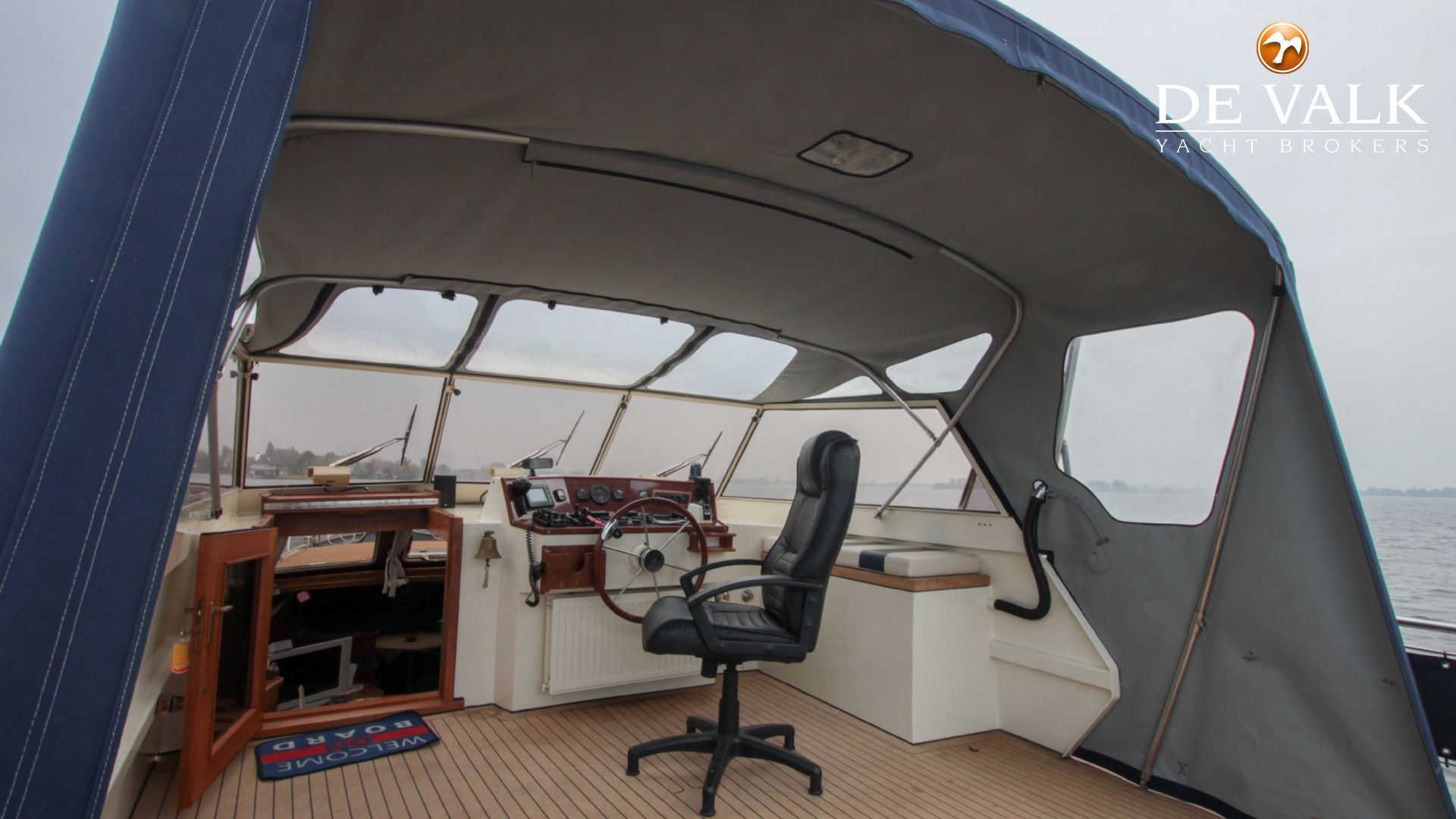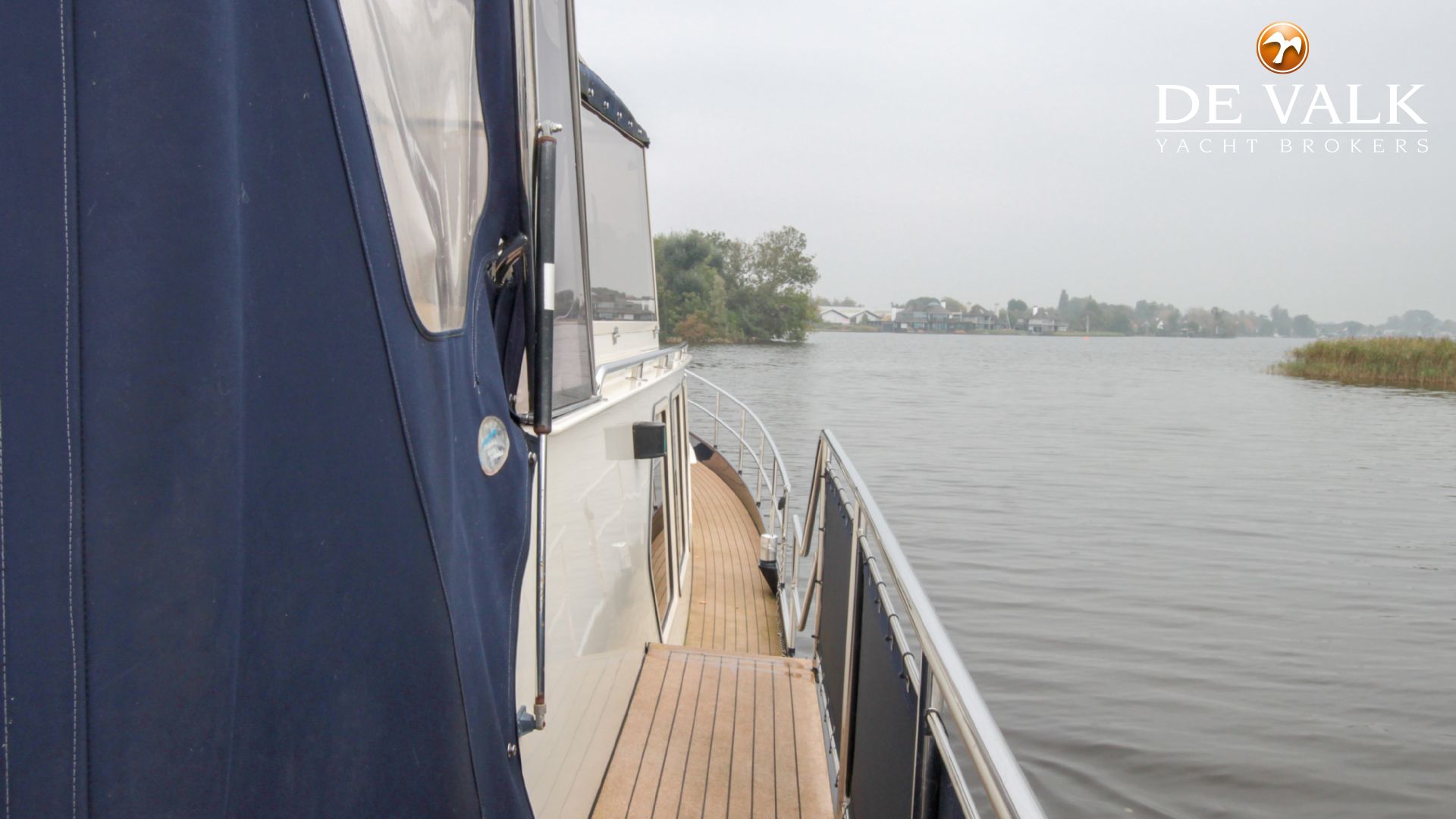 Stalen motorjacht Brabant Kruiser 14,25 m., genaamd '' Janne'', modern motorjacht met klassieke prestaties. Gebouwd door Brabant Yachting, Nederland. Ruim en comfortabel interieur, Boeg en hekschroef, ruim achterdek.