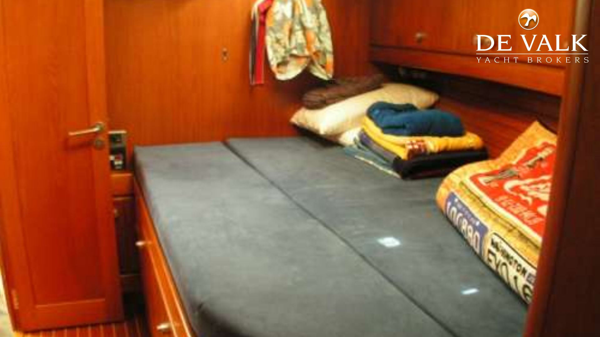 Sloop rig, Mare-chal white painted aluminium 3-spreader keel-stepped mast, rod rigging, Harken ball bearing cars for all tracks including mainsheet track and inner foresail tracks, Harken fittings for all running gear, Navtec hydraulic backstay adjuster (new 2005), boomvang and babystay tensioner with central pump on steering pedestal, Profurl manual furling headsailsystems for cutter and genoa (new 2006), Leisure Furl electric in-boom system for mainsail (new 2005), improved new gearbox for the reefing system of the main (new 2006), spinnaker boom (stored against mast).