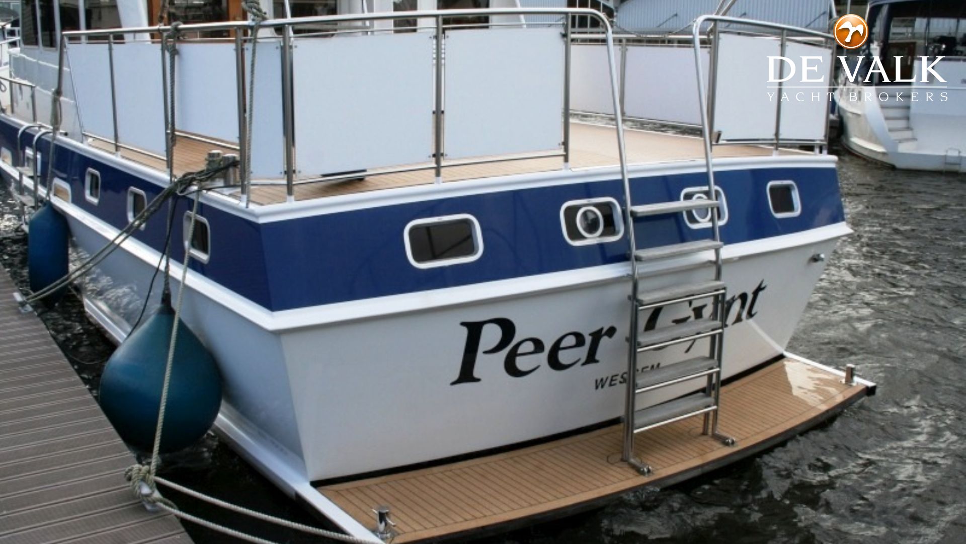 Steel motor yacht De Groot Trawler named Peer Gynt, spacious yacht with two double cabins (both with island berth), large kitchen and dinette, spacious aftdeck and top deck. Teak interior, well looked after by her current owners and in perfect condition. Very suitable for living aboard.