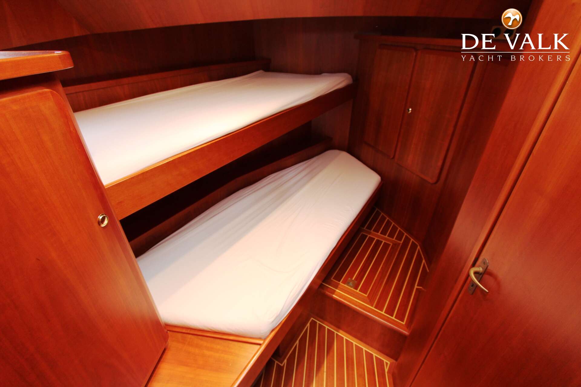 Linssen Grand Sturdy 430 AC twin "Linssy" gebouwd bij Linssen Yachts in 2000, design category: B. Layout met twee hutten (fransbed en stapelbed), twee toiletten en een douche. Verder uitgerust met twee Volvo Penta diesel motoren, boegschroef, Onan generator en Eberspacher centrale verwarming. Kom naar onze overdekte verkoophaven in Sneek om deze Linssen Grand Sturdy te bekijken!