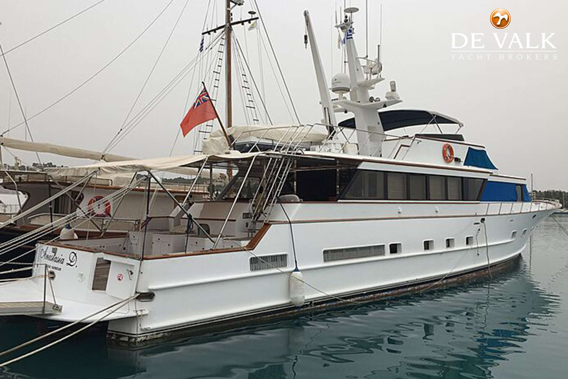 ANASTASIA D, constructed in USA, is powered by two MTU engines with propulsion of two KAMEWA 63W water jets. She has aluminium hull and LOA 102 f.