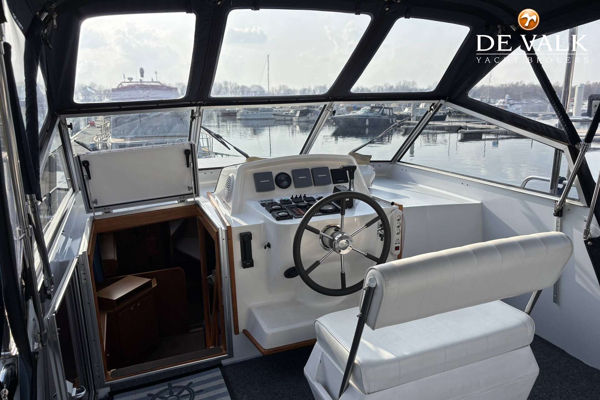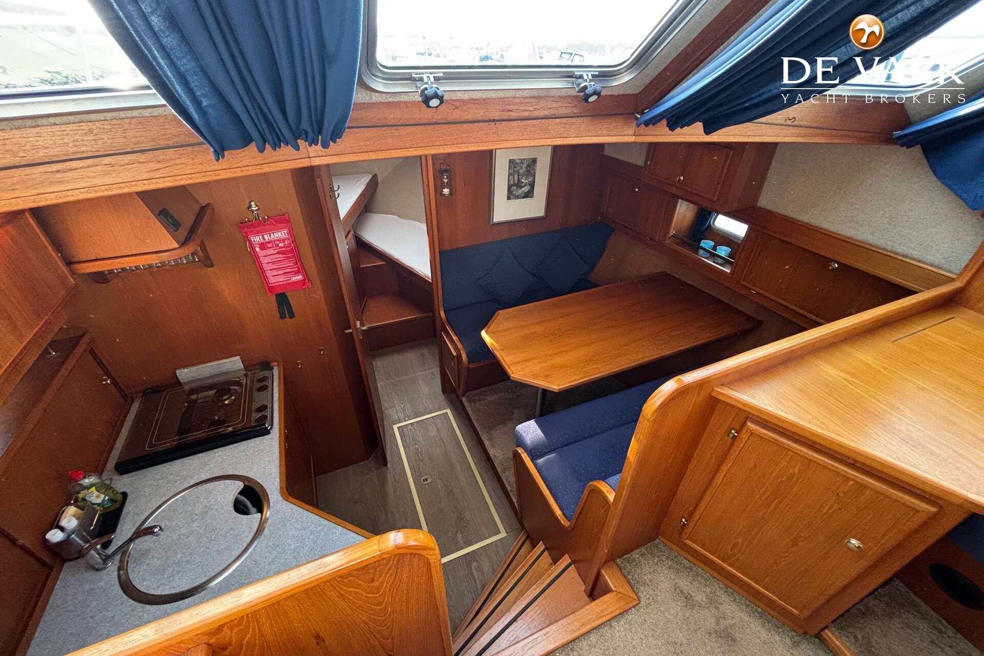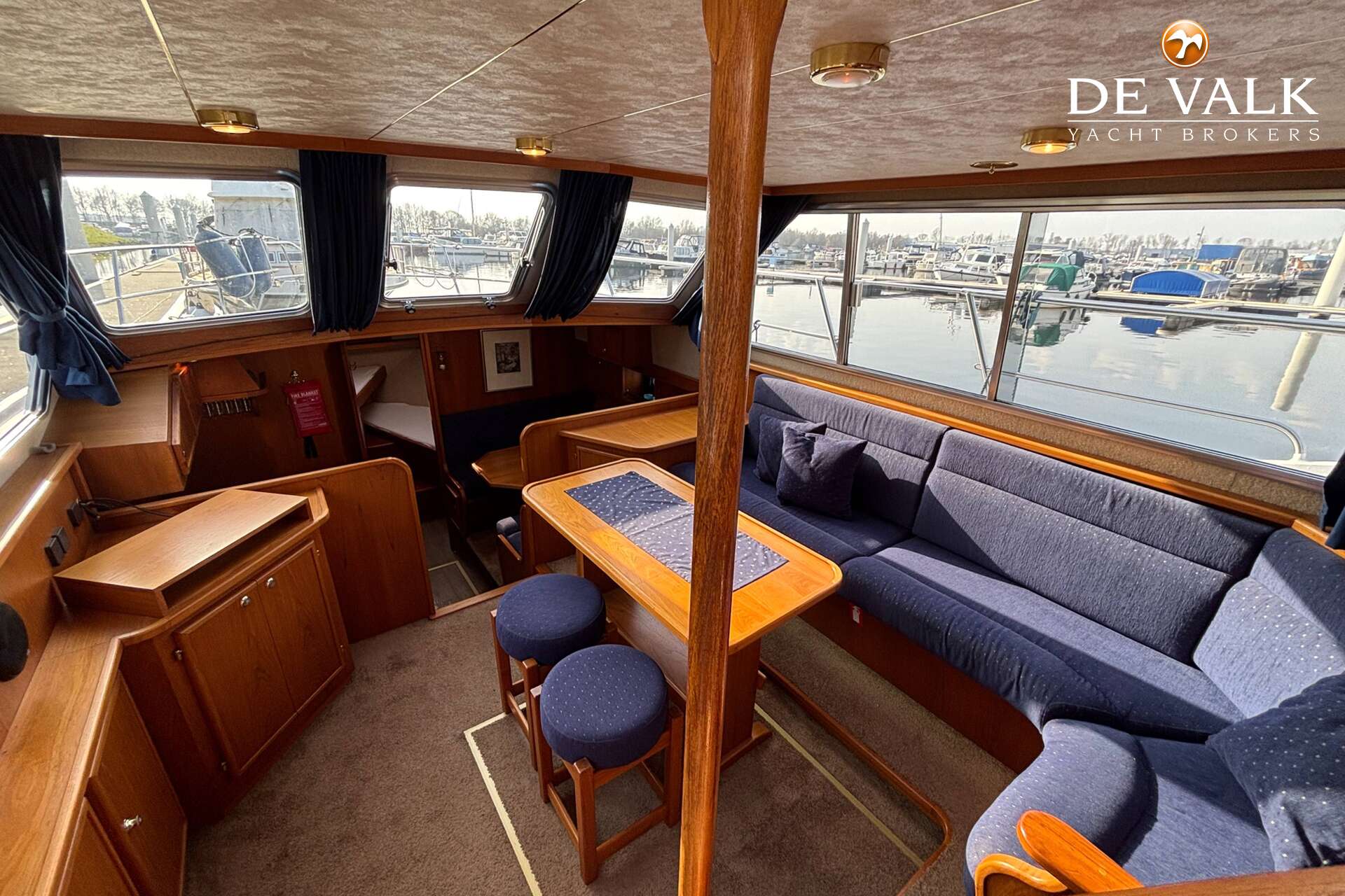 Het ruime achterdek biedt een fijne plek om tijdens het varen of in de haven van het uitzicht te genieten. Binnen treft u een warm en praktisch interieur met veel lichtinval.